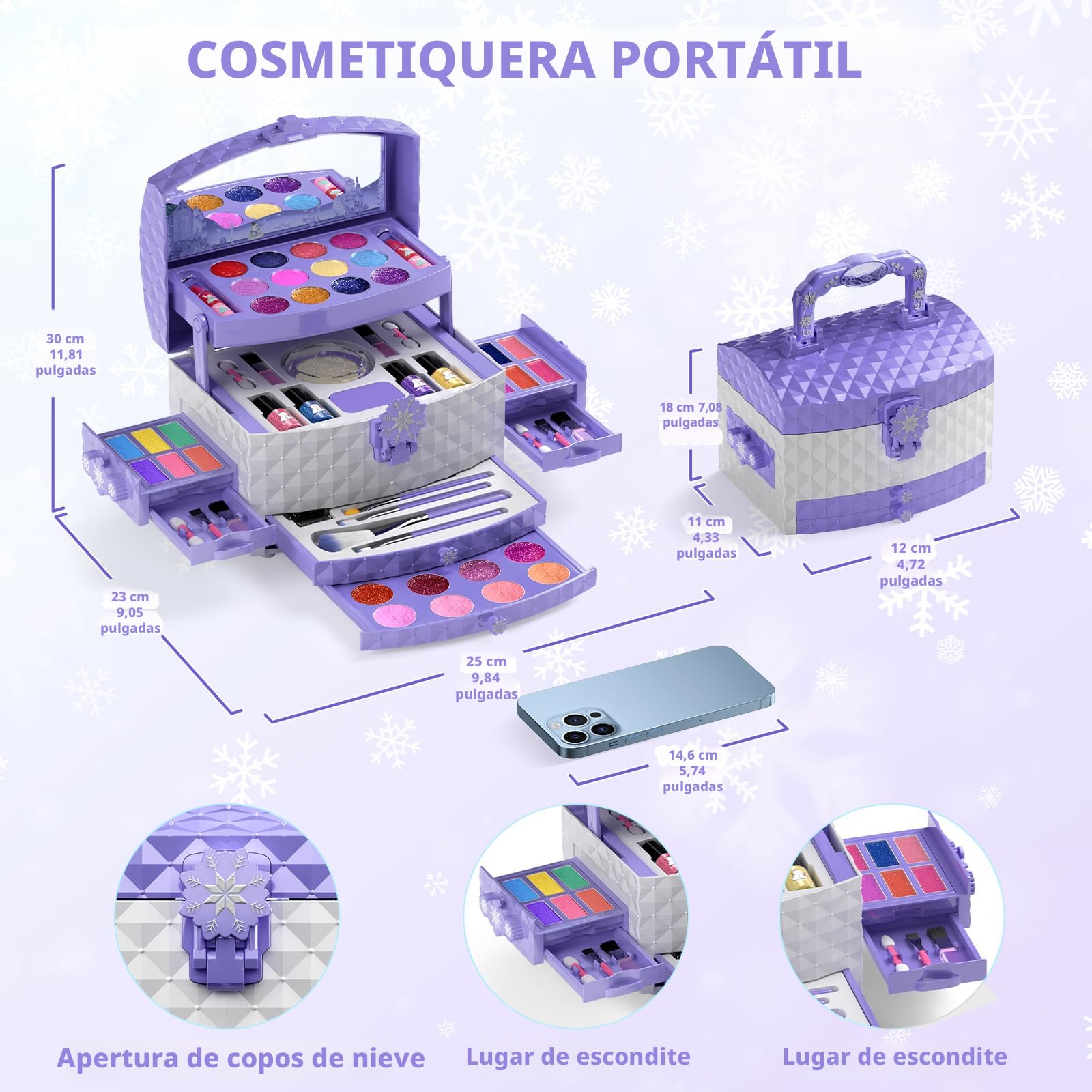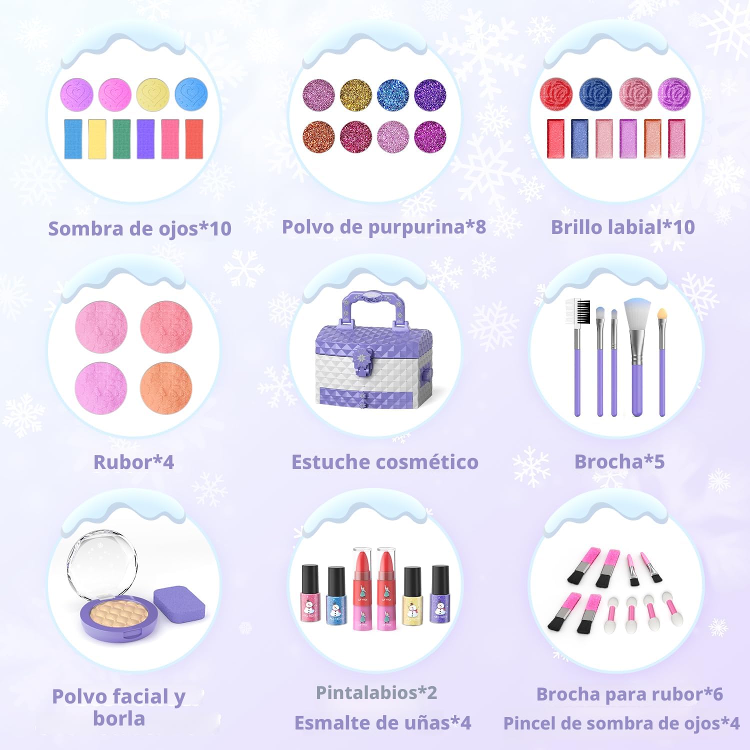 PERRYHOME Juego de maquillaje infantil para niña, 56 piezas, cosméticos auténticos lavables, no tóxicos
