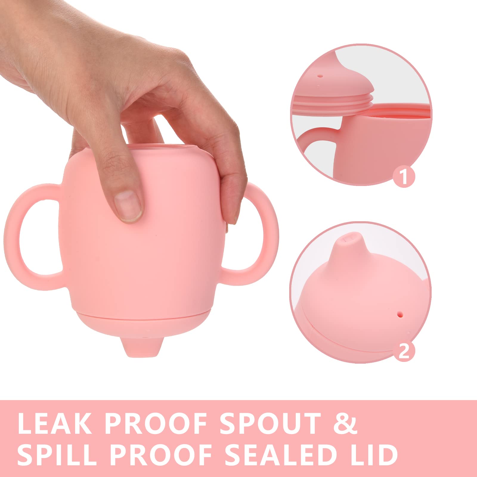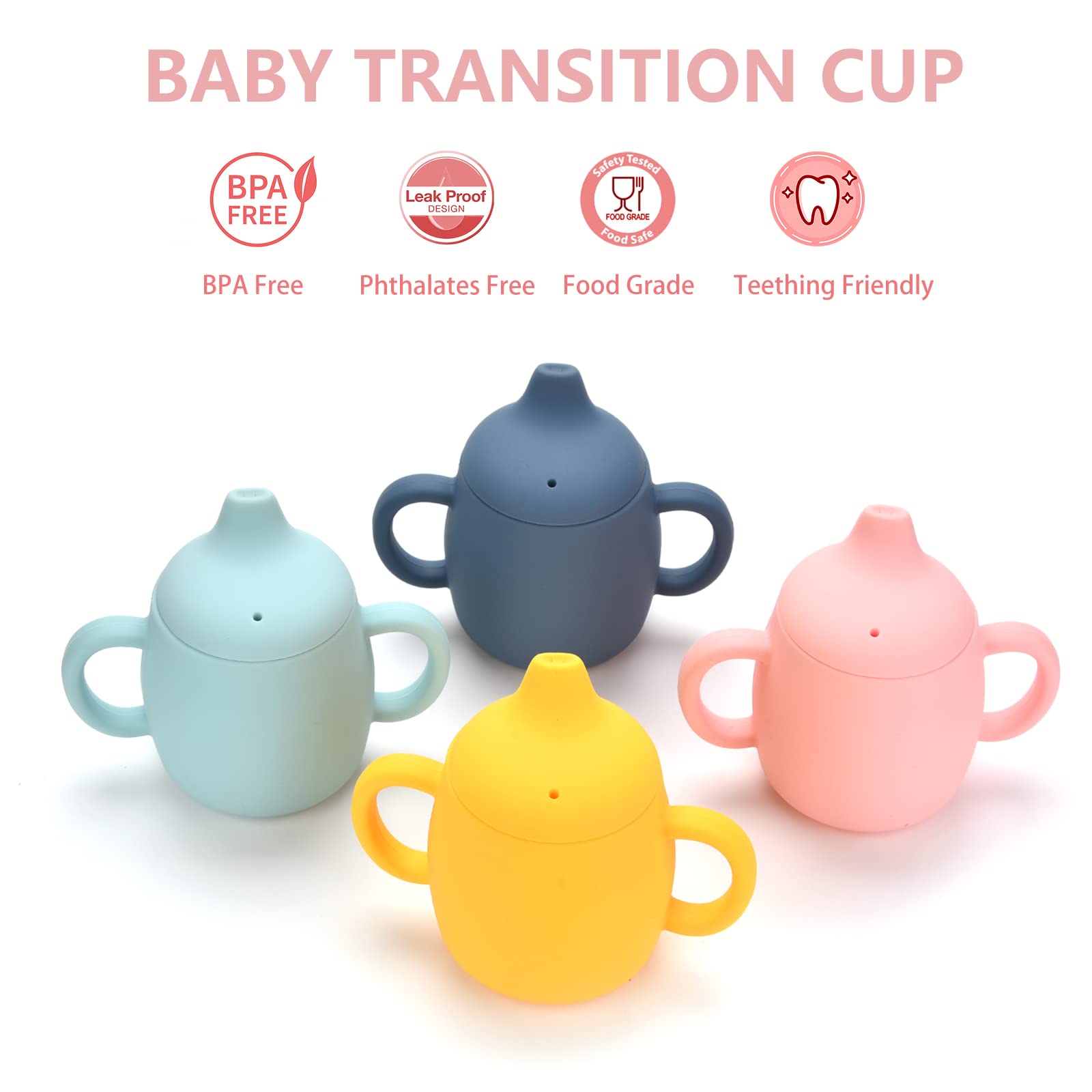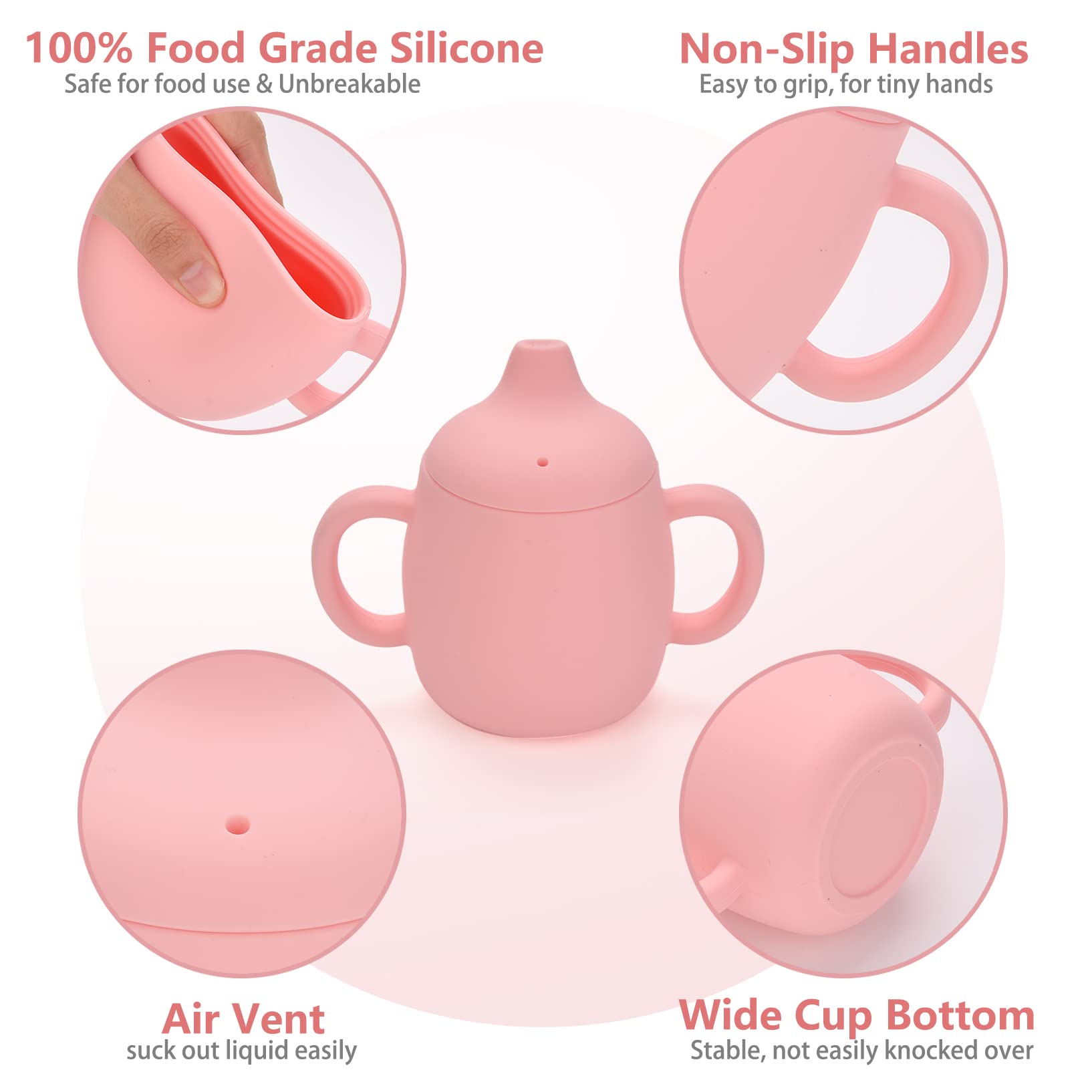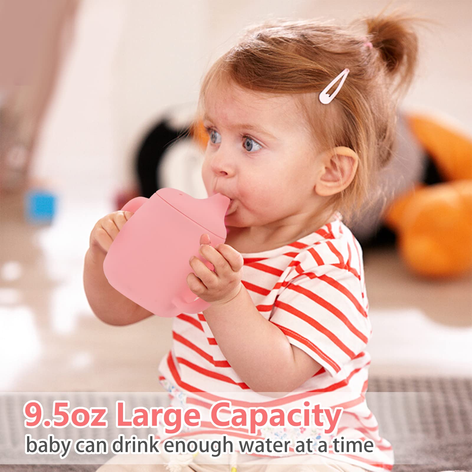 A prueba de derrames con asas y tapa de boquilla, sin BPA, taza de entrenamiento irrompible para bebés, tazas de paja de silicona para bebés de 6 meses + 9.5 onzas.