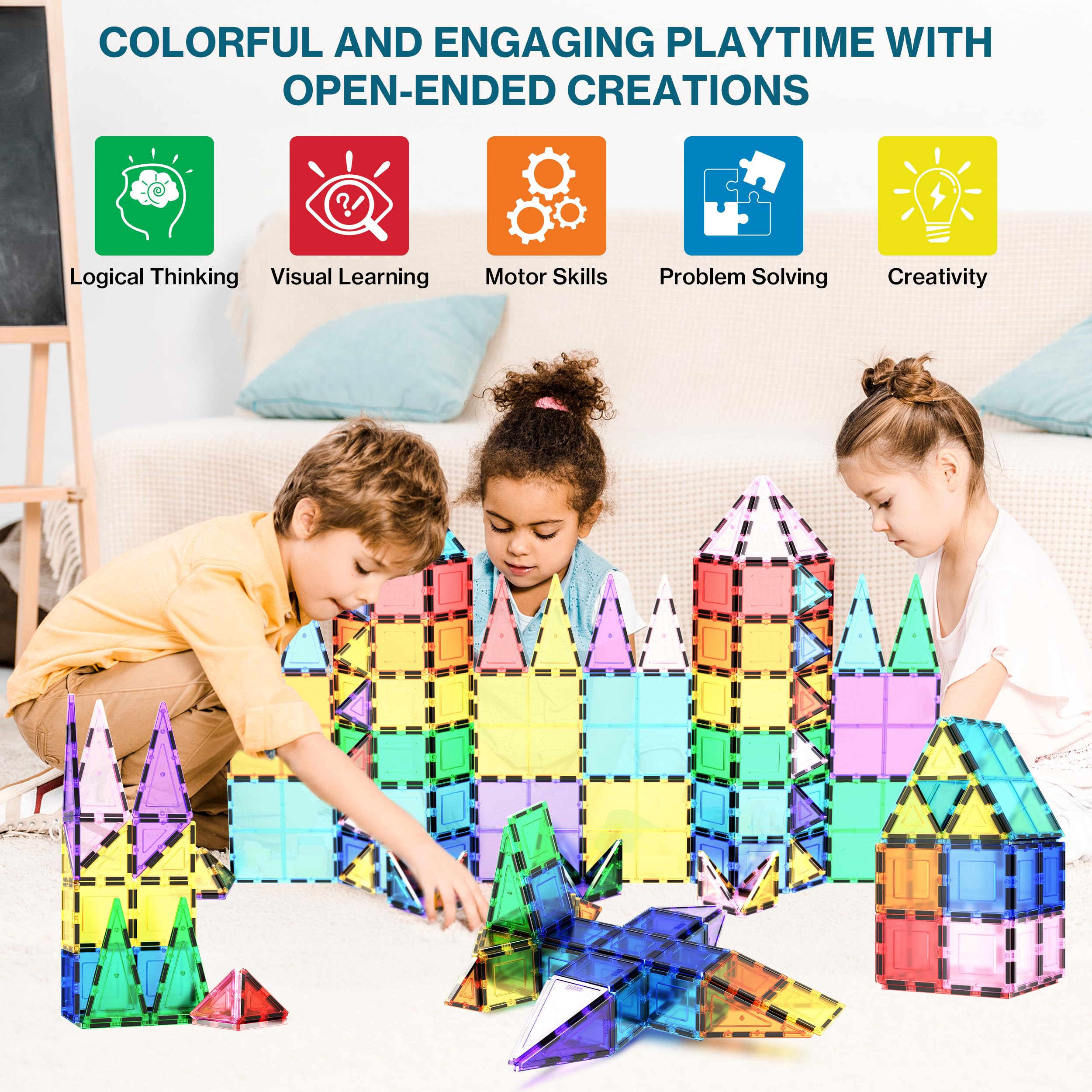 PicassoTiles Set de bloques azulejos magnéticos de construcción, 100 piezas