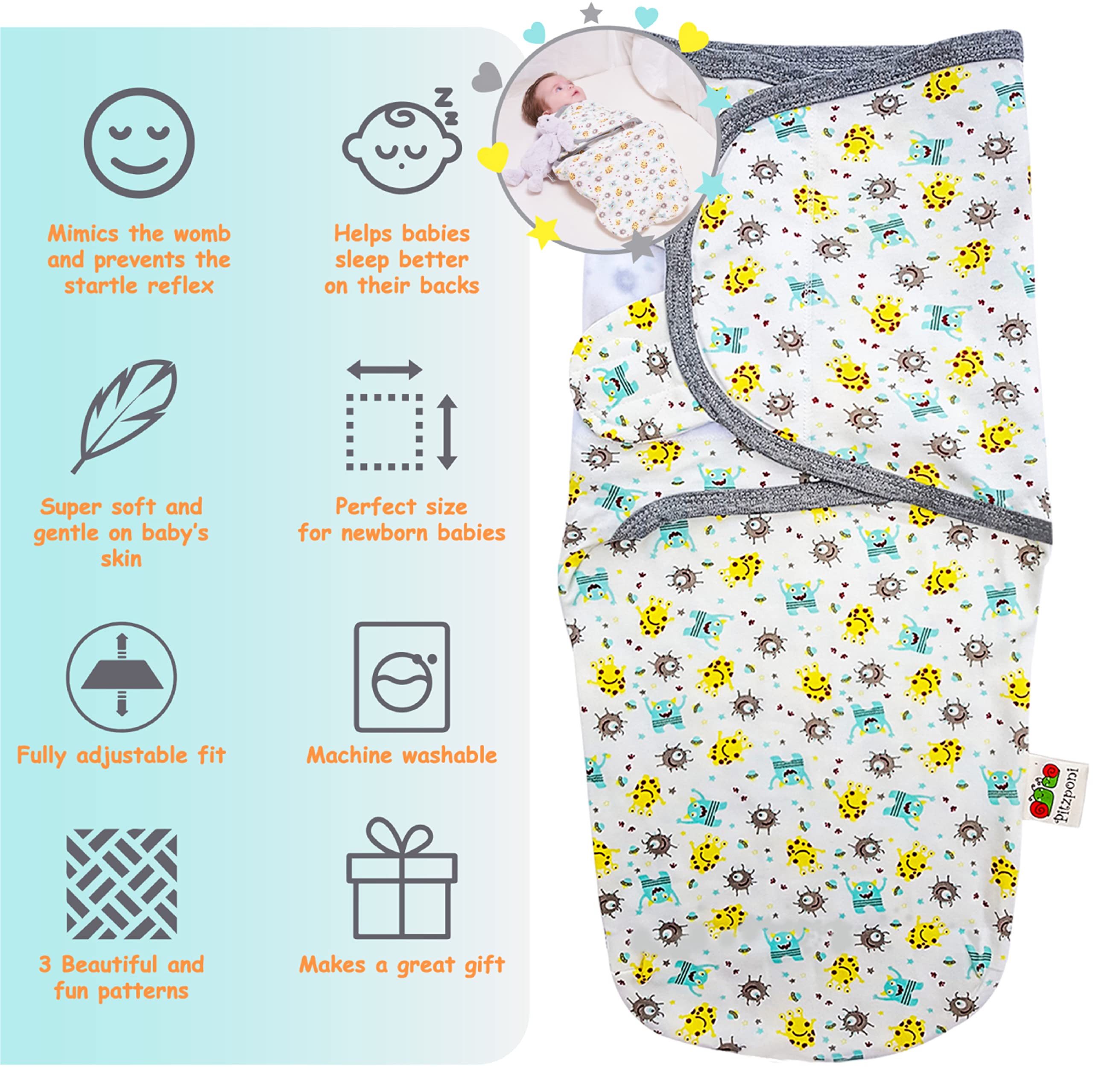 Pitzponi manta para envolver bebés 0-3 meses