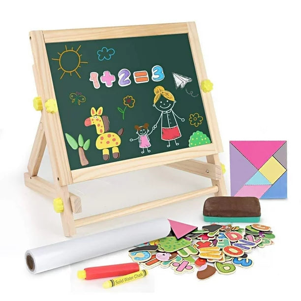 Pizarras magnéticas dobles Beebee con tiza, borrador y papel de dibujo