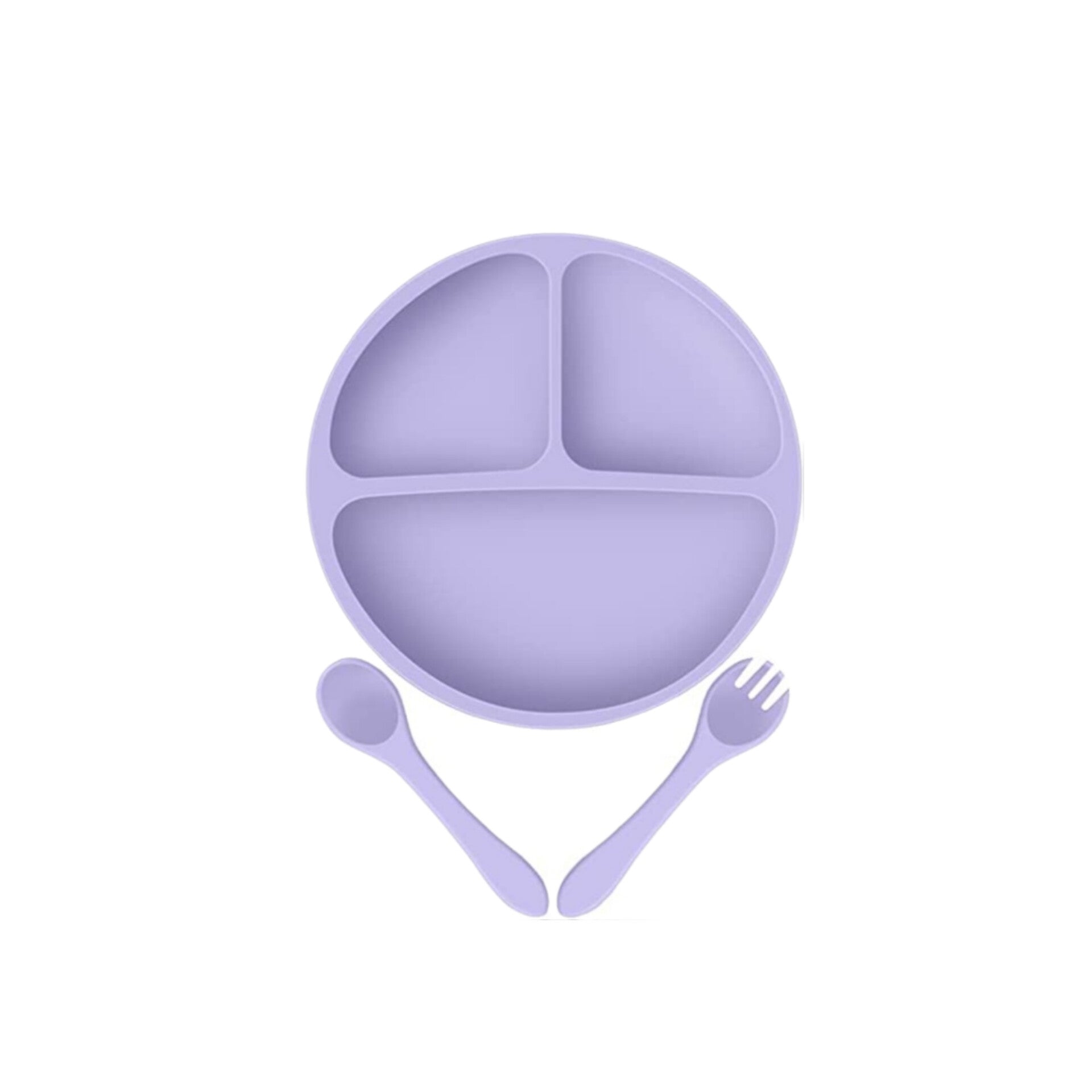 Plato de succión para bebé con cuchara de autoalimentación y tenedor, morado