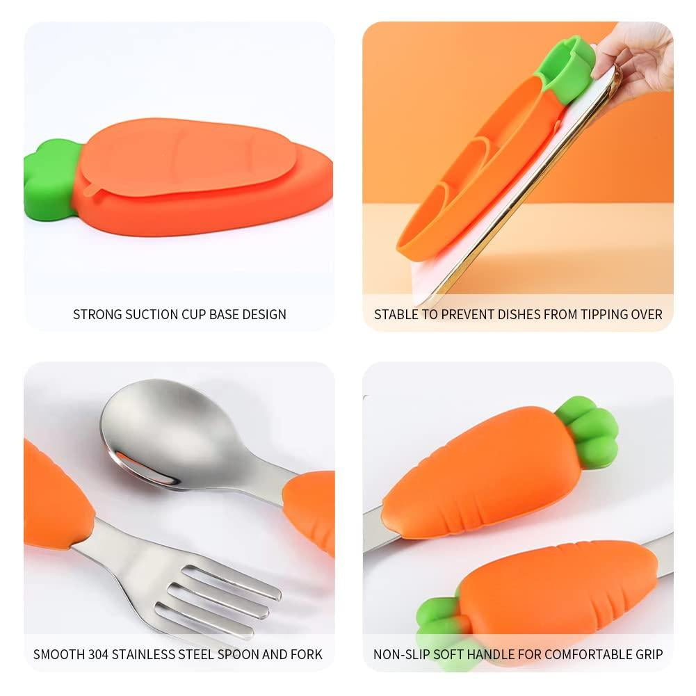 Plato silicon y cubiertos de zanahoria