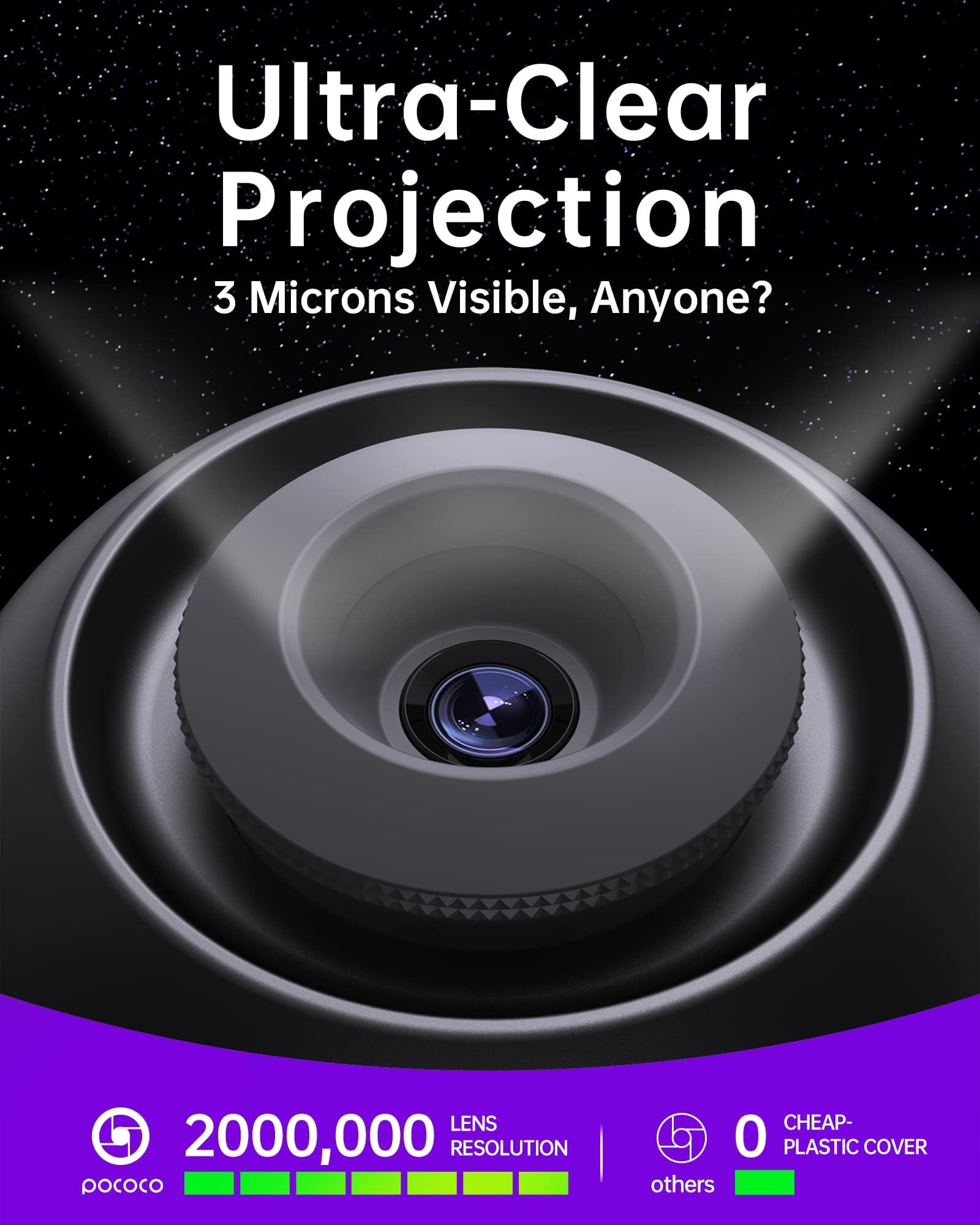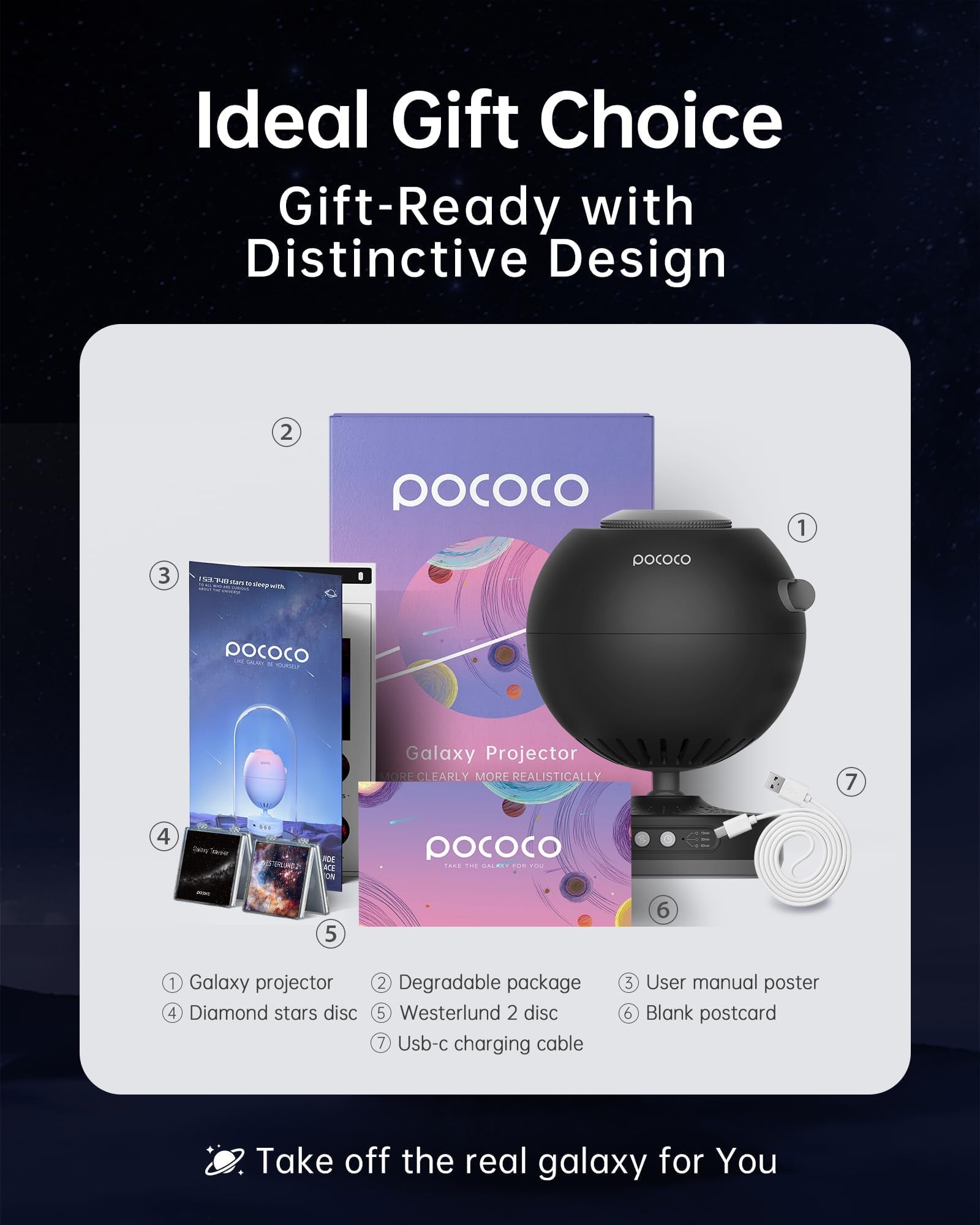 POCOCO Proyector Galaxy Star para dormitorio con discos de película óptica reemplazables, proyector de luz nocturna de planetario
