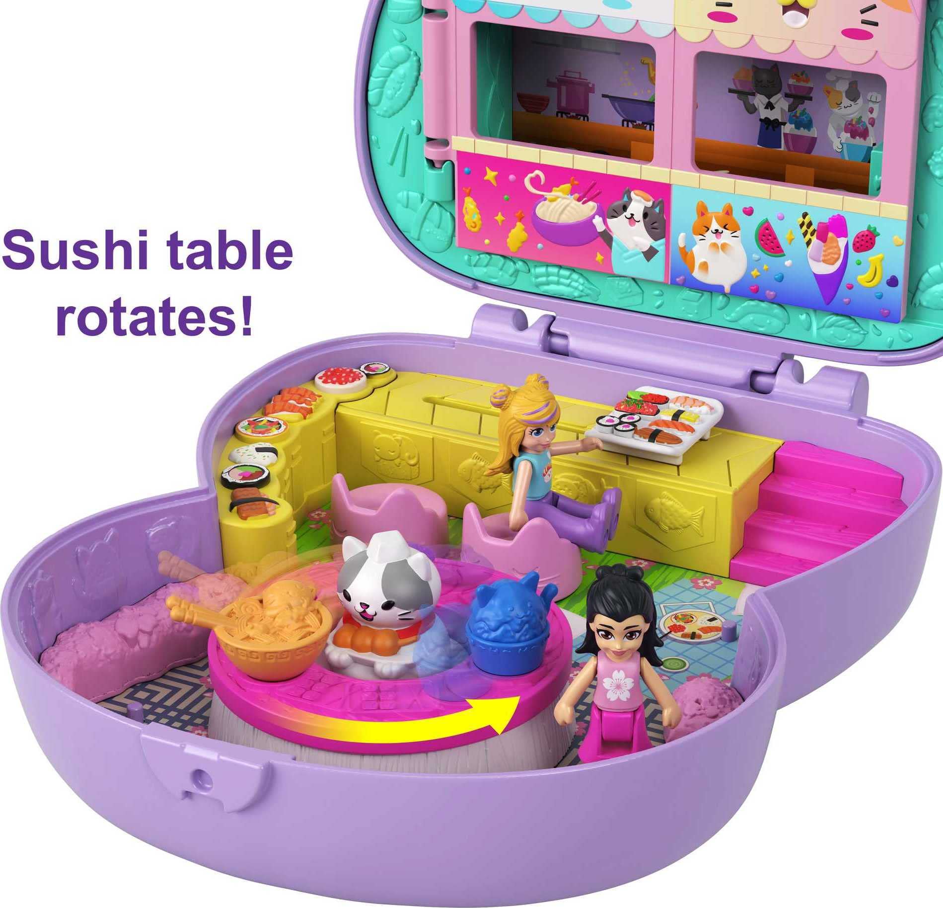 Polly Pocket Sushi Shop - Juego compacto con temática de sushi japonés con 2 micromuñecas y 12 accesorios