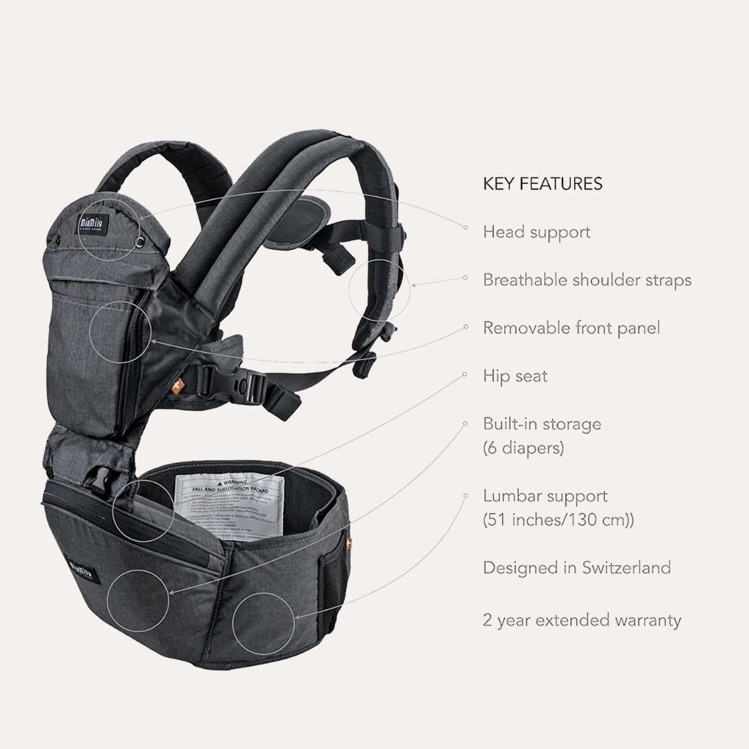 Portabebés con asiento de cadera MiaMily Hipster Plus - 6 posiciones de transporte