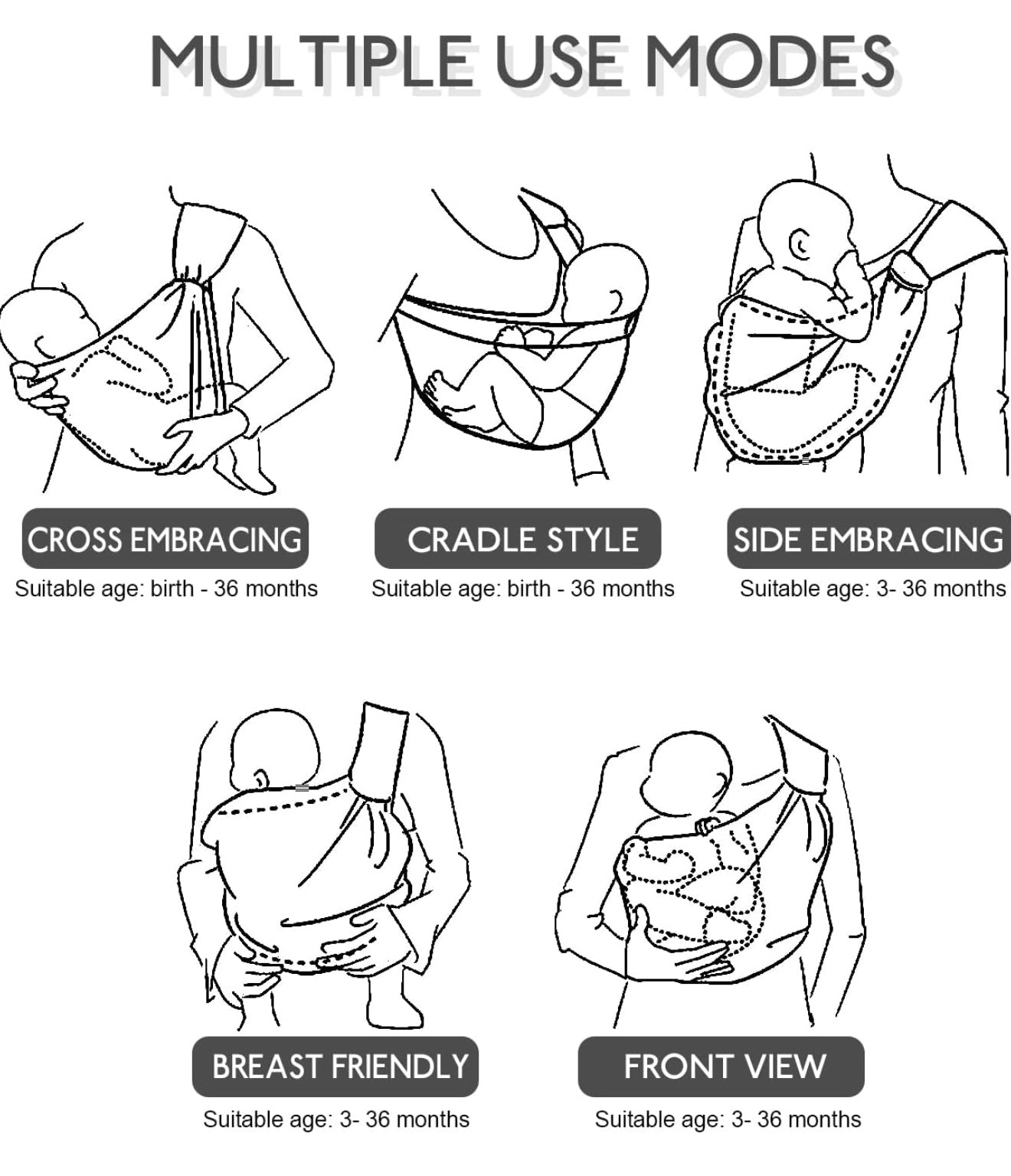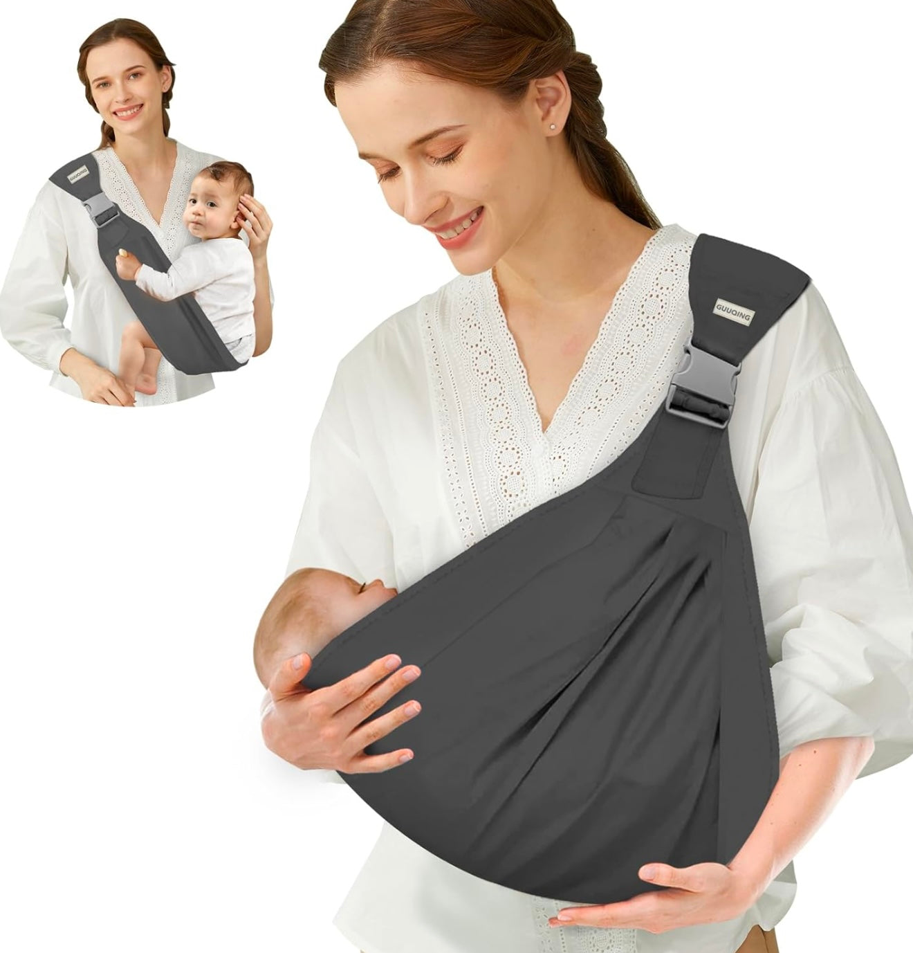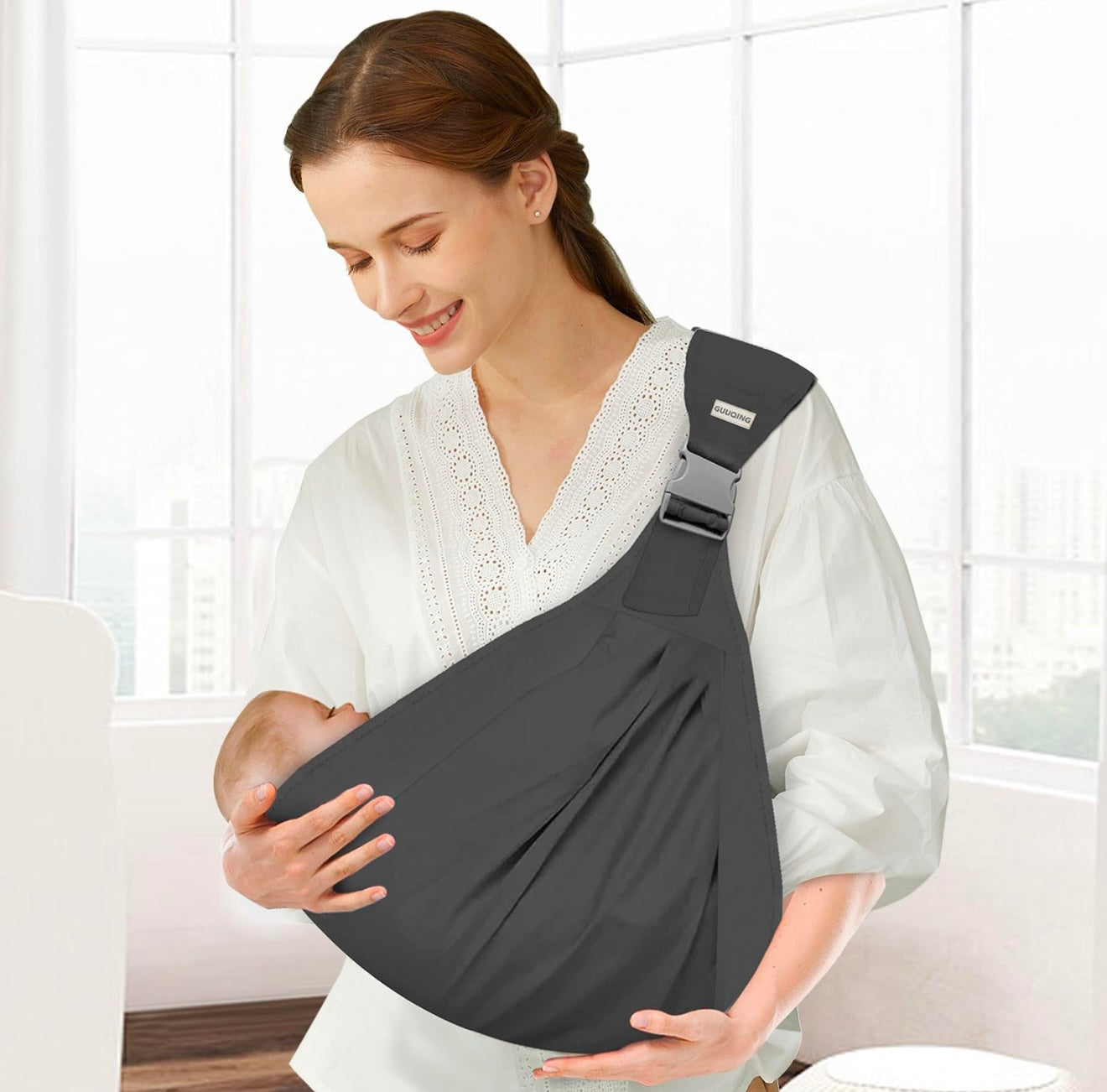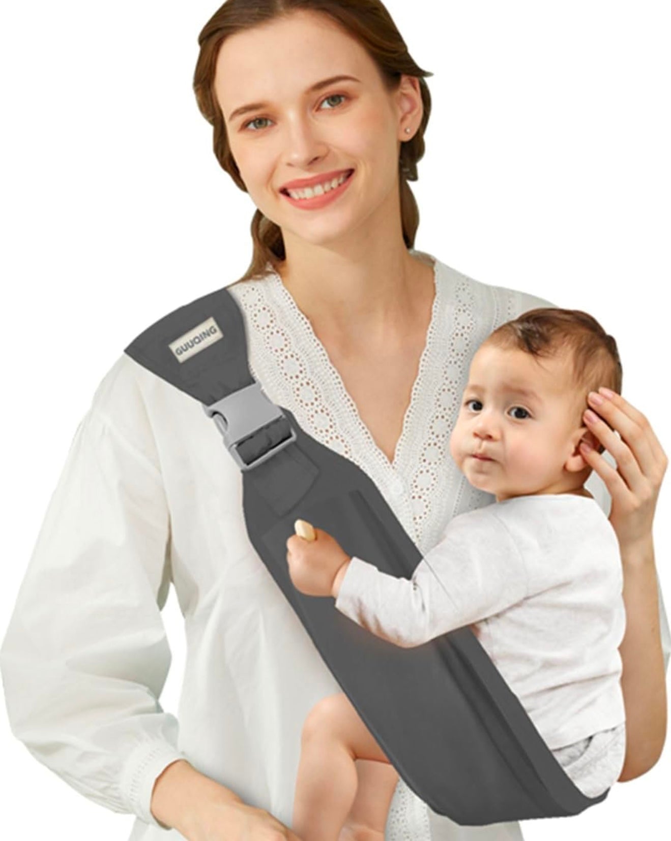 Portabebés de un hombro para niños pequeños de hasta 45 libras (gris)