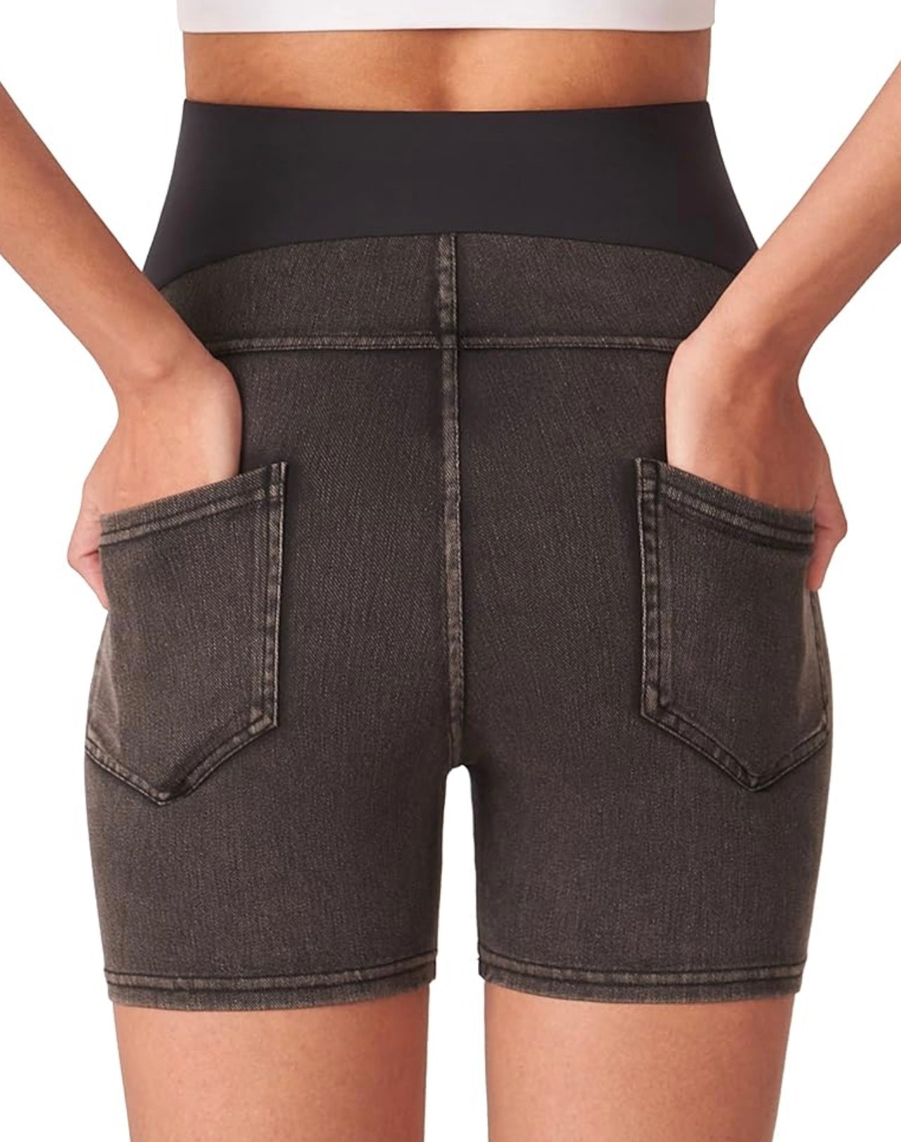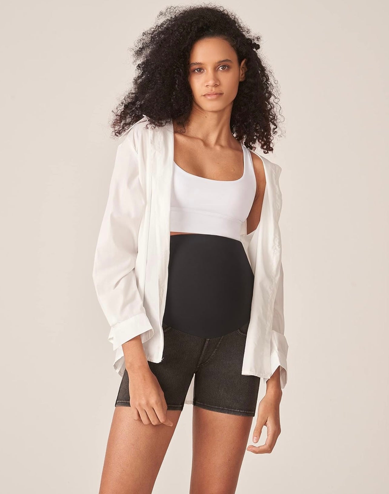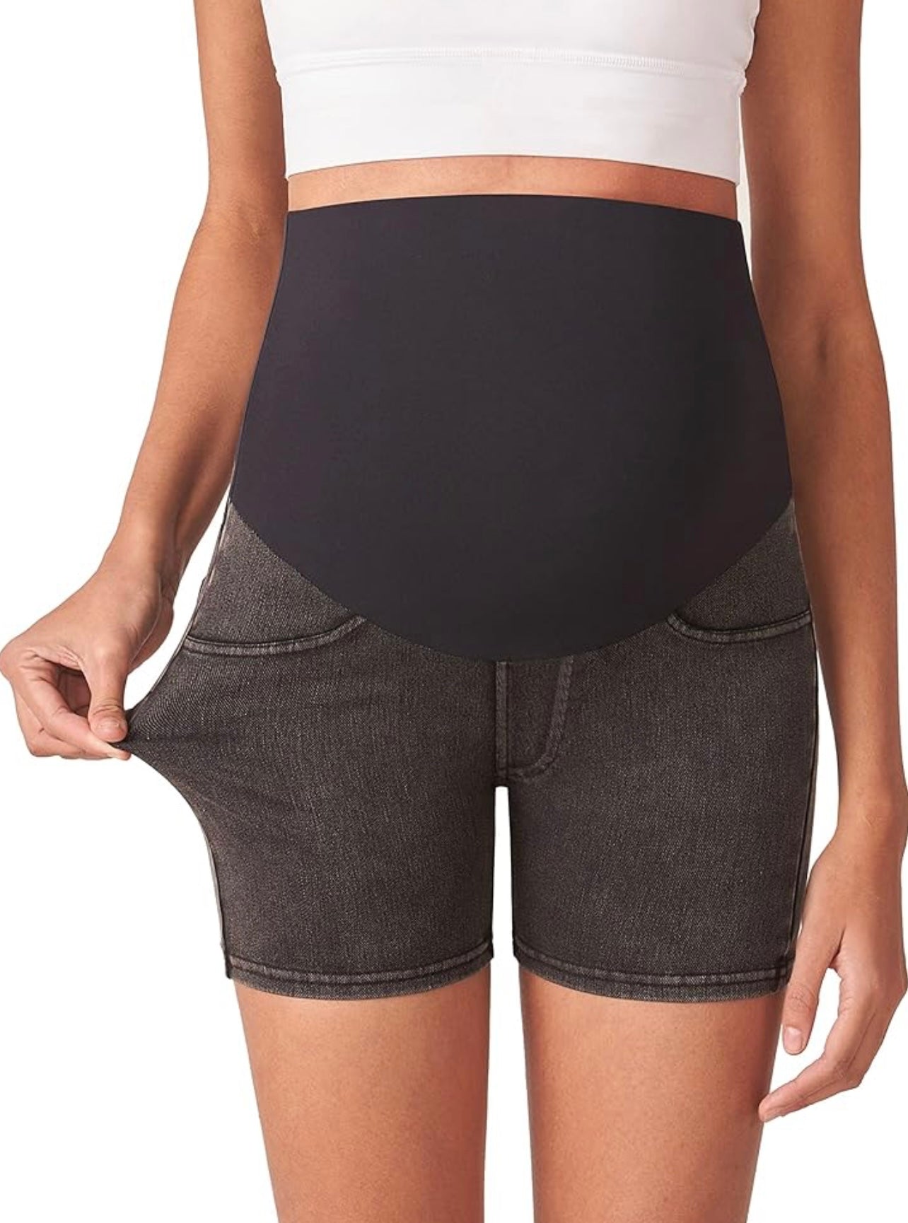 POSHDIVAH Pantalones cortos vaqueros de maternidad para mujer sobre el vientre elásticos, talla L