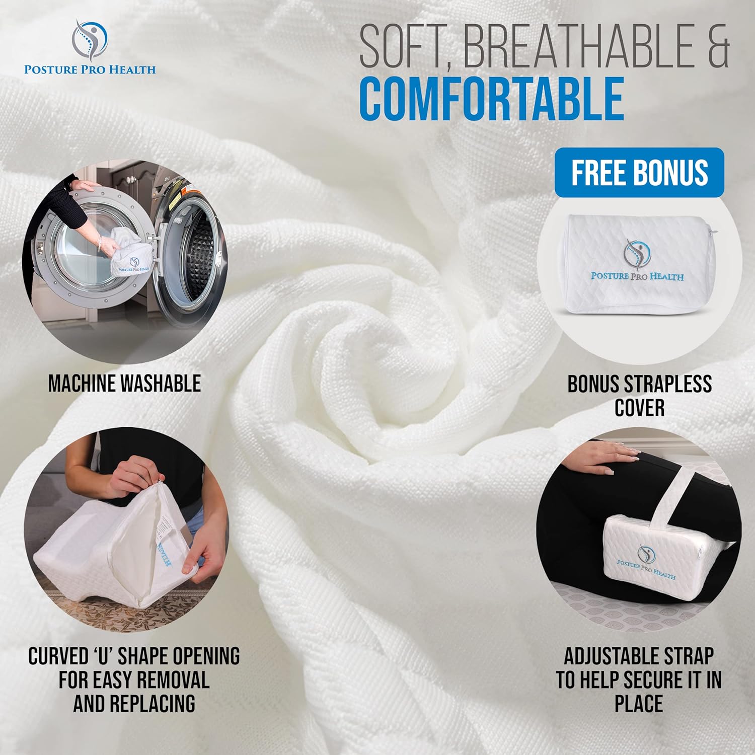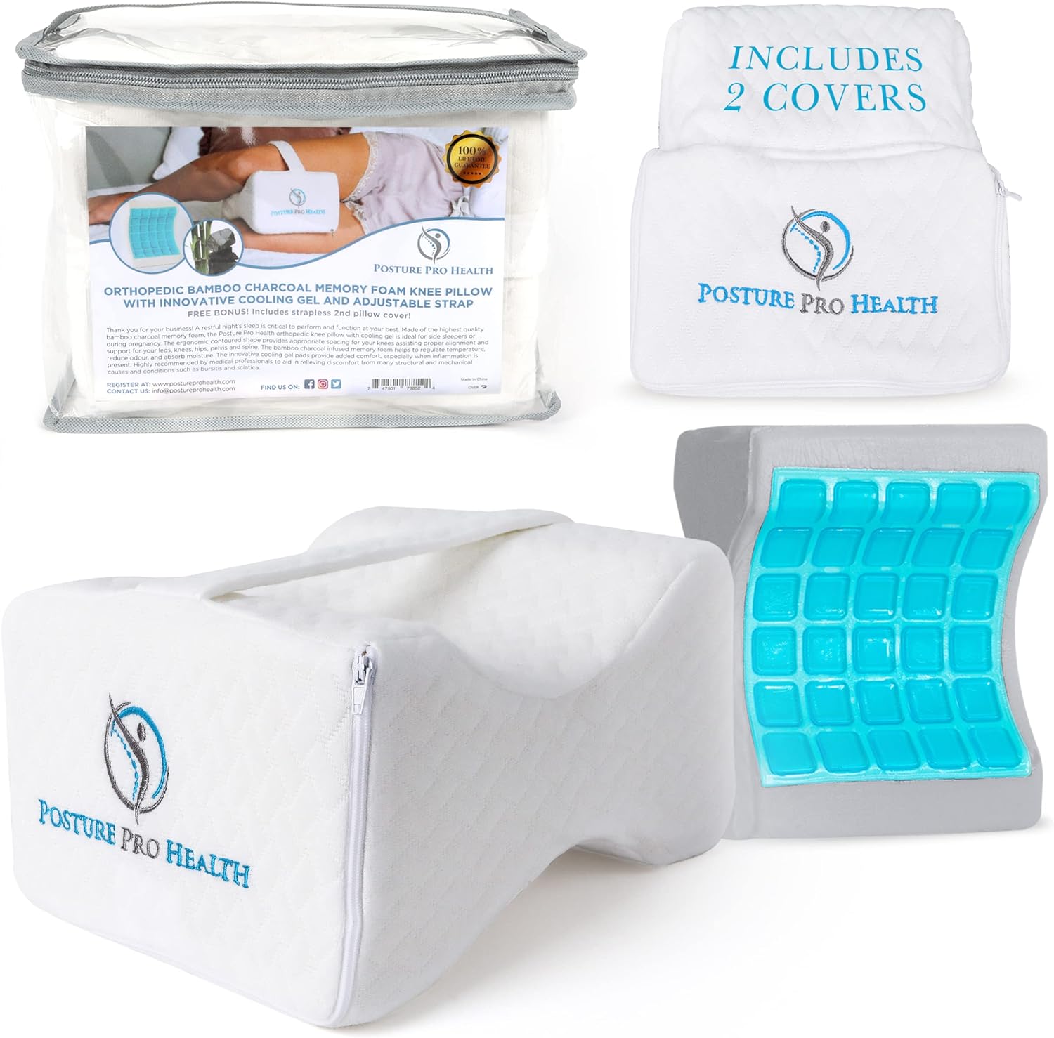 Posture Pro Health- Almohada ortopédica para rodilla de espuma viscoelástica con gel refrescante y correa ajustable