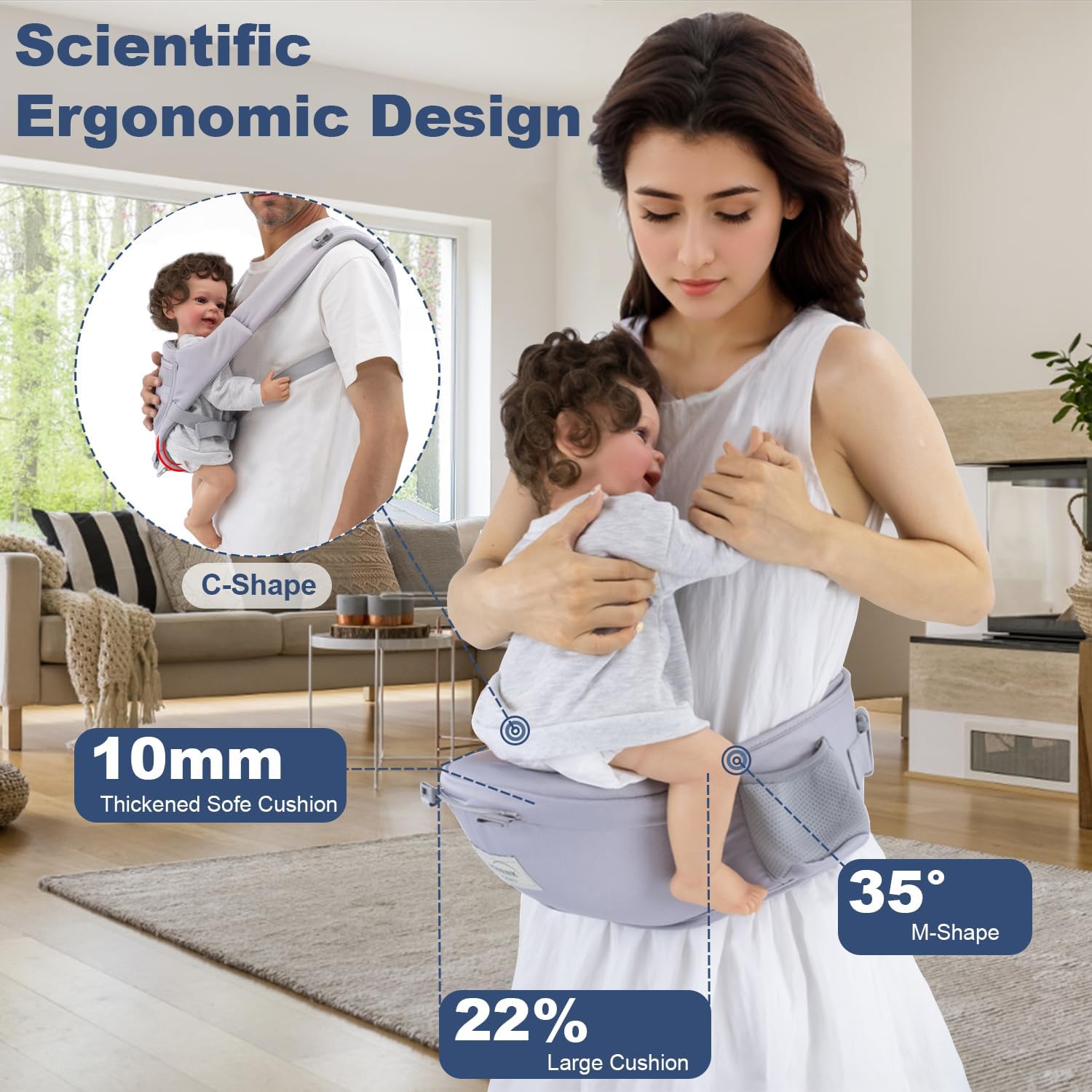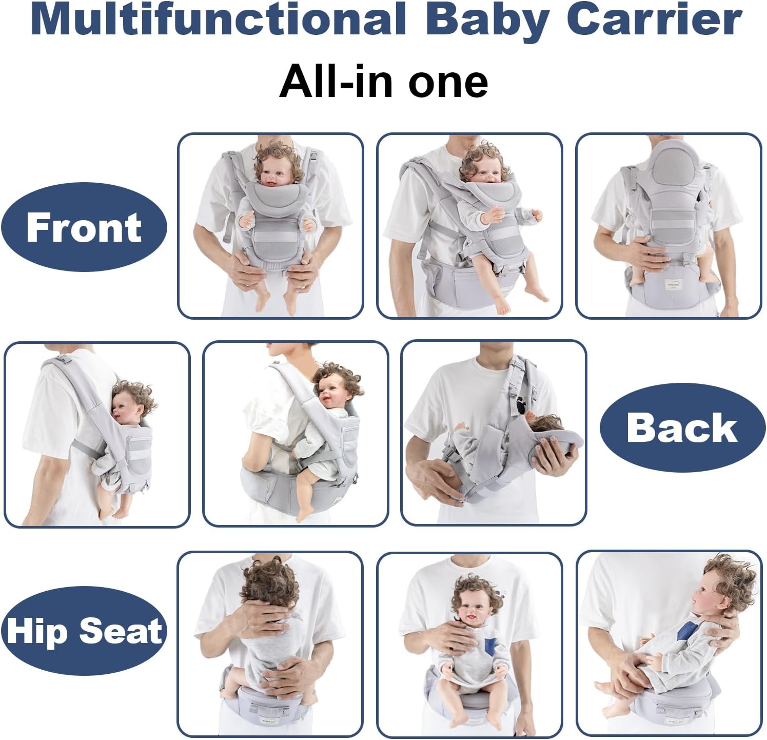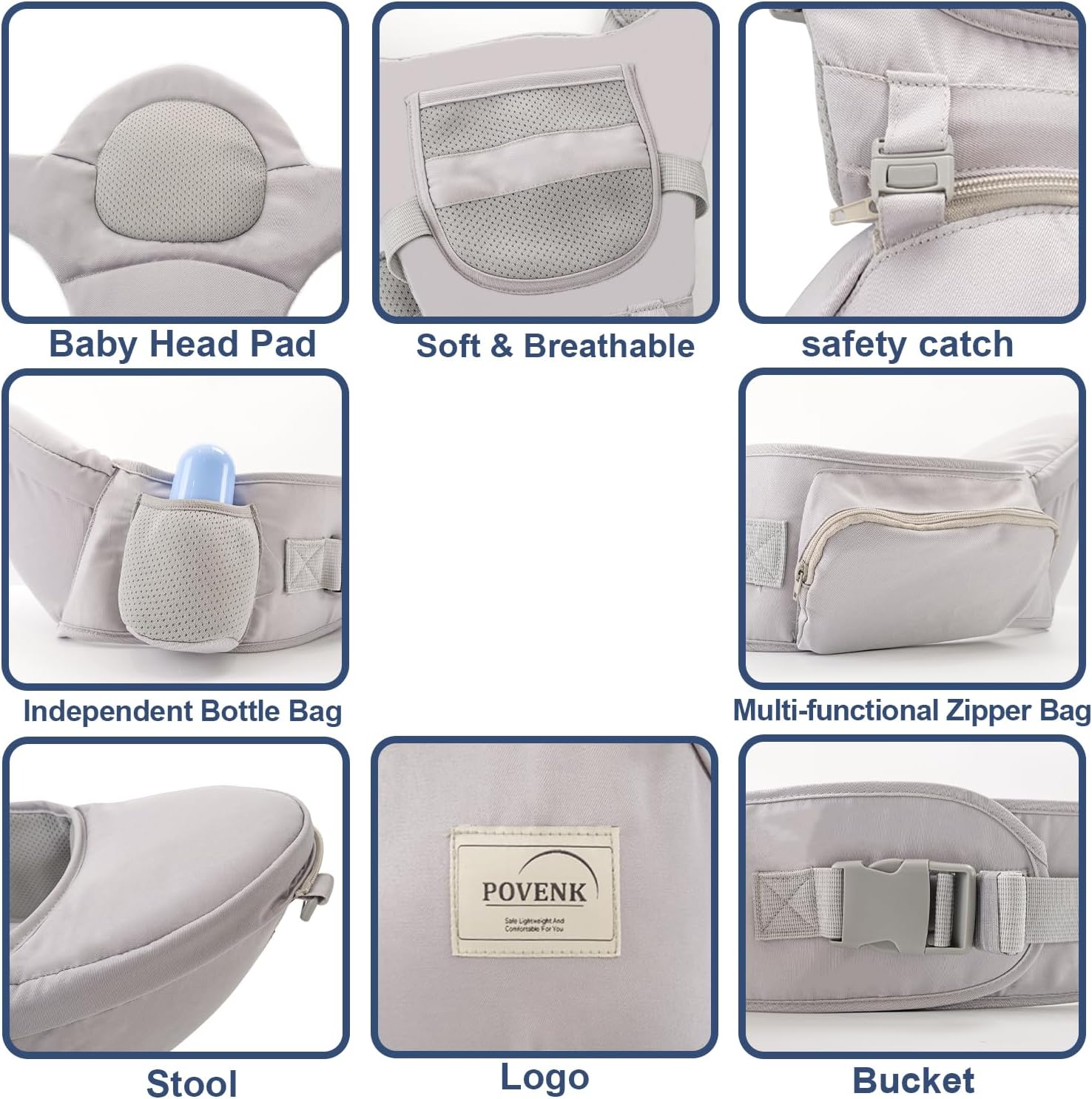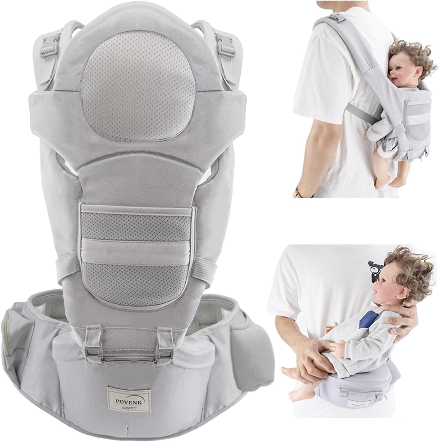 Povenk- Portabebés con asiento de cadera, portabebés 6 en 1 para recién nacidos a niños pequeños