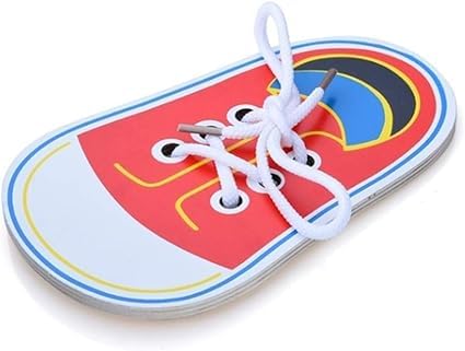 Práctica para atar zapatos de madera roja