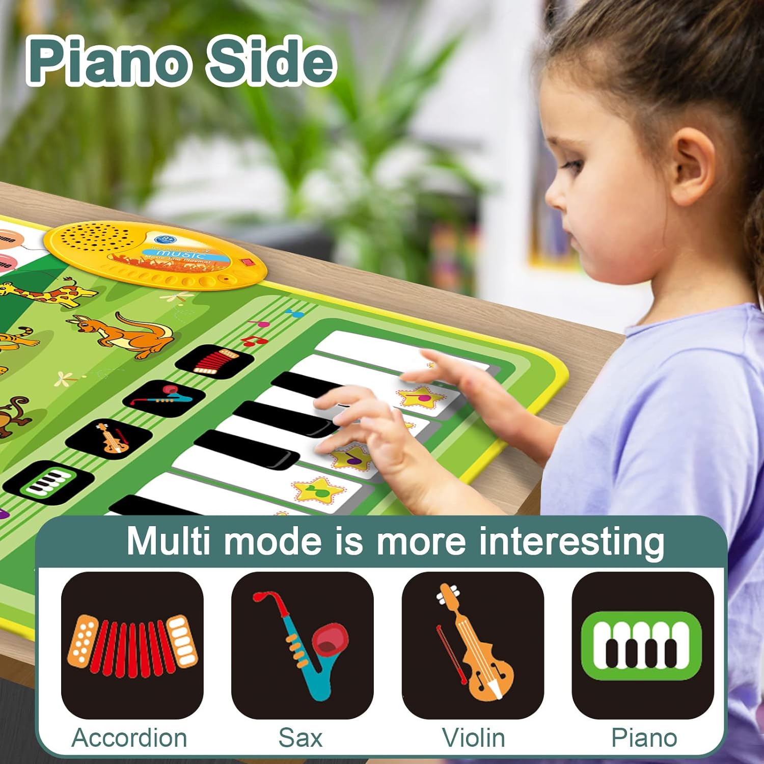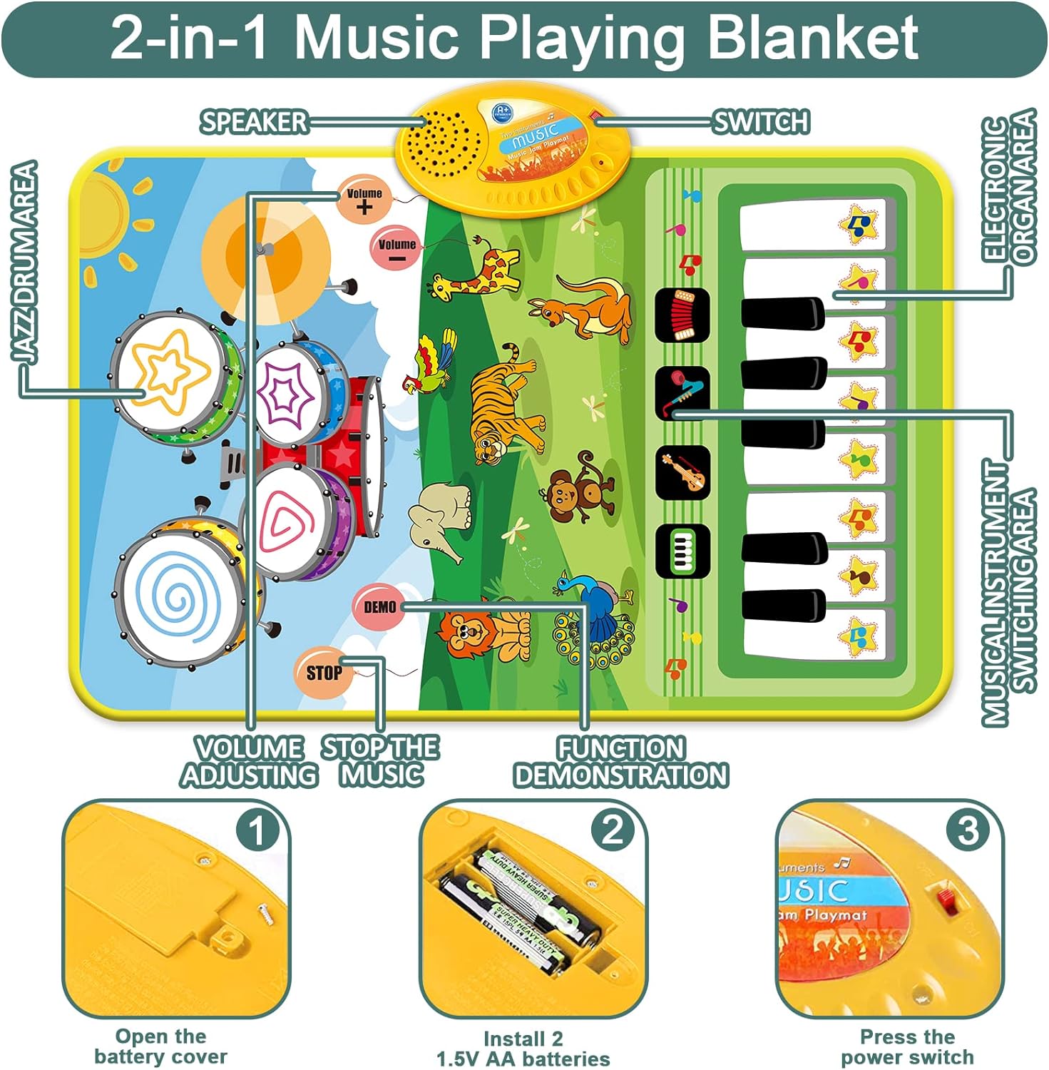 Juguetes musicales de material seguro y de alta calidad: esta alfombrilla para piano está hecha de tela no tejida suave, antideslizante de alta calidad que no dañará la piel de su hijo. Nuestro regalo de cumpleaños para niño de 1 año tiene un sonido claro y también puedes ajustar el volumen de la manta musical para elegir el volumen adecuado para tu hijo.