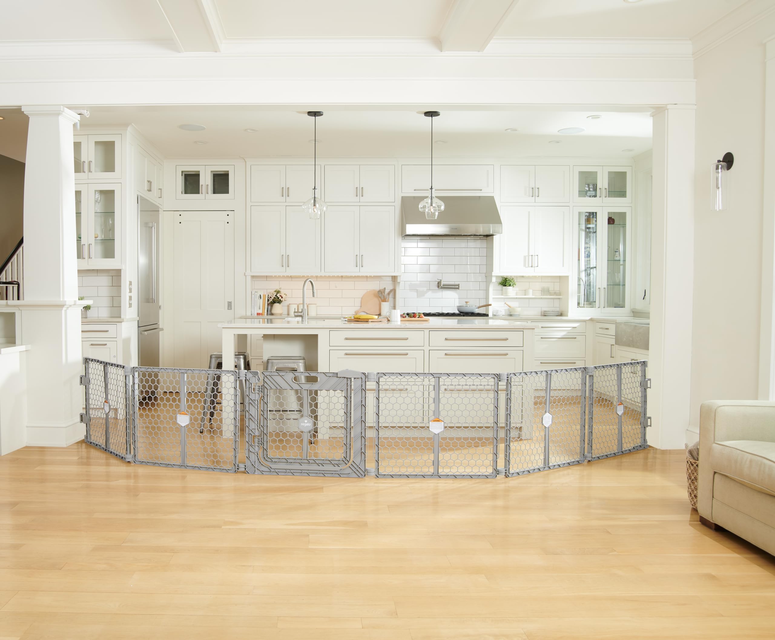 Superancho: se adapta a aberturas de hasta entre 192 pulgadas de ancho y mide 26 pulgadas de alto. Incluye una puerta para simplemente abrir y pasar.