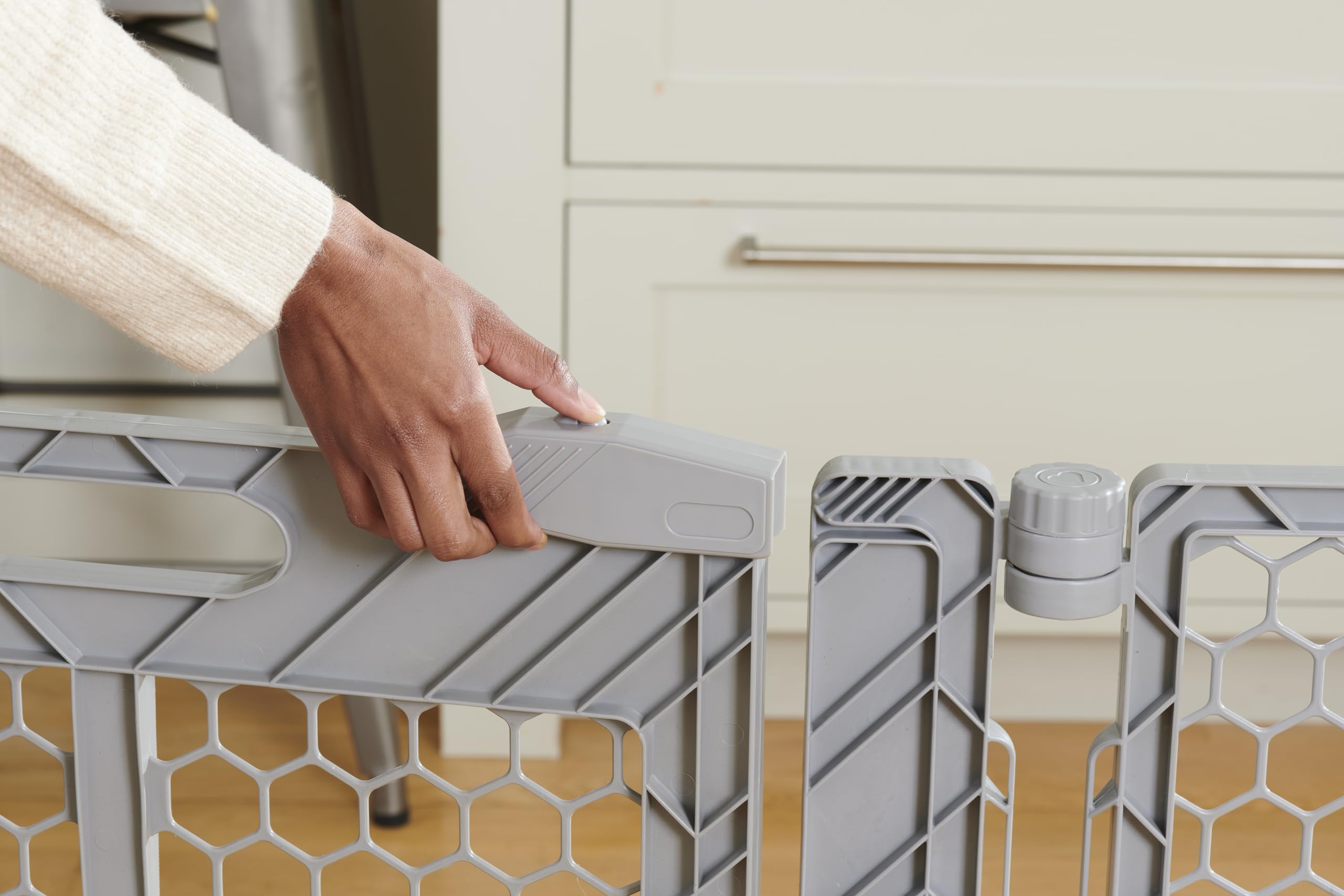 Configurable: cada panel se puede ajustar para adaptarse a casi cualquier apertura. Ideal para espacios amplios, aberturas en ángulo, pasillo, puerta o parte inferior de escaleras. Se pliega para guardarlo.