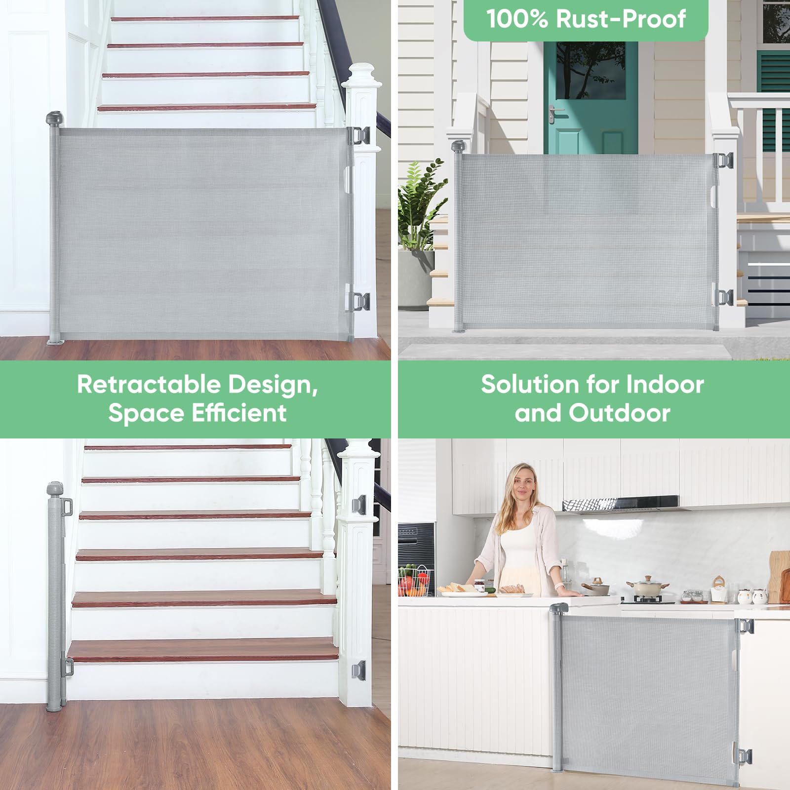 Puerta retráctil para bebés Likzest, puerta de malla para bebés y mascotas de 33" de alto, se extiende hasta 55, gris