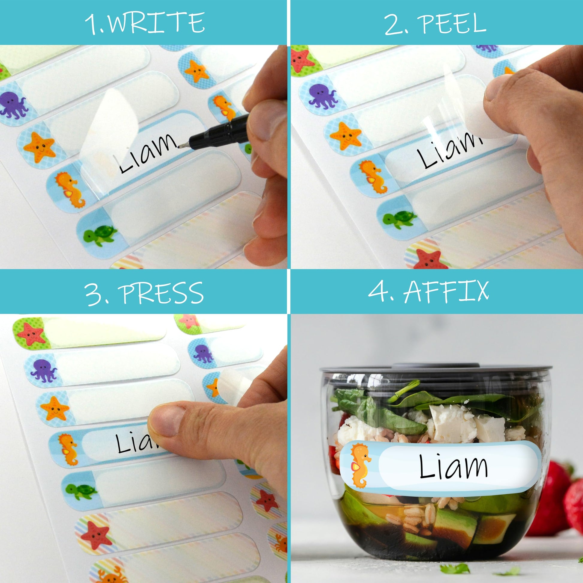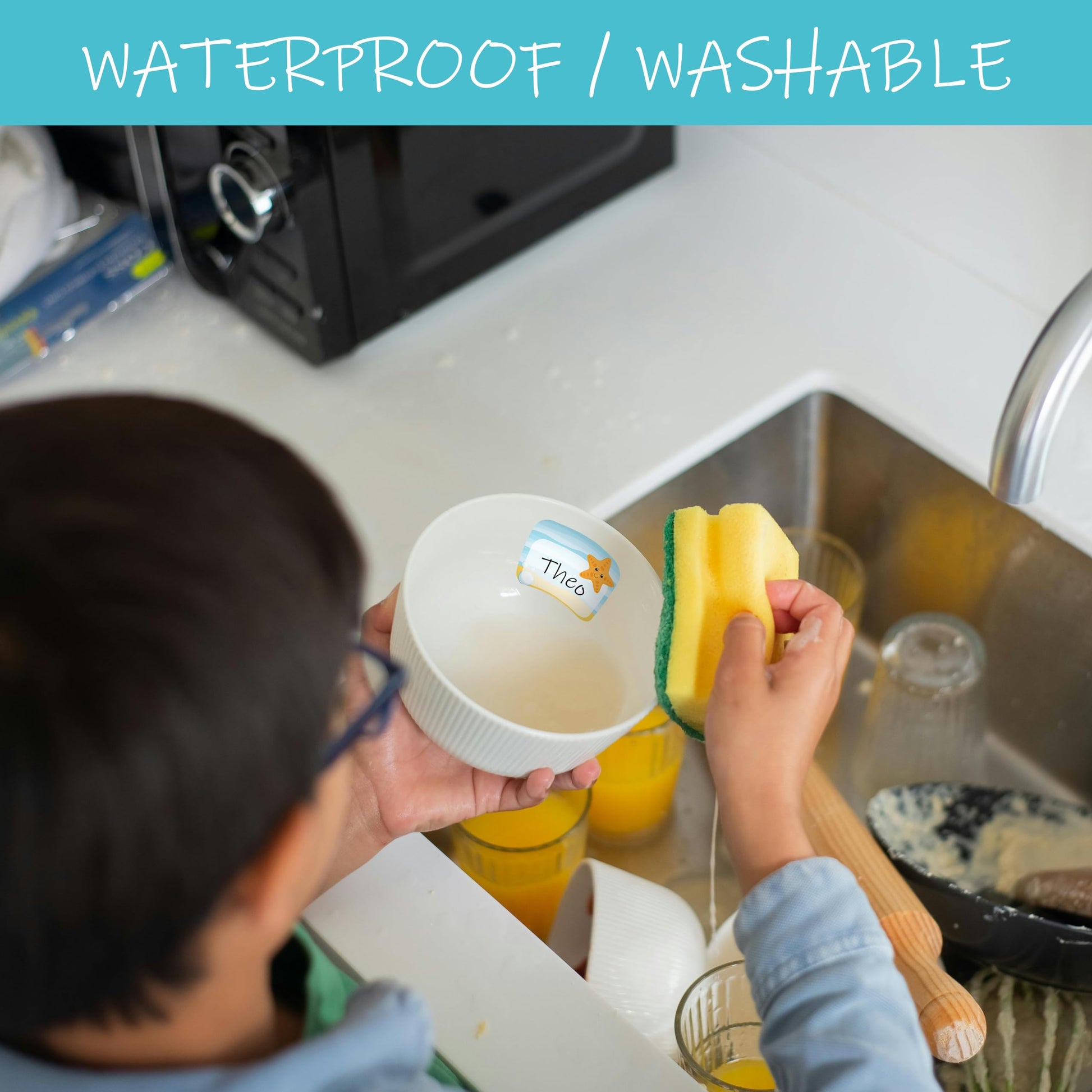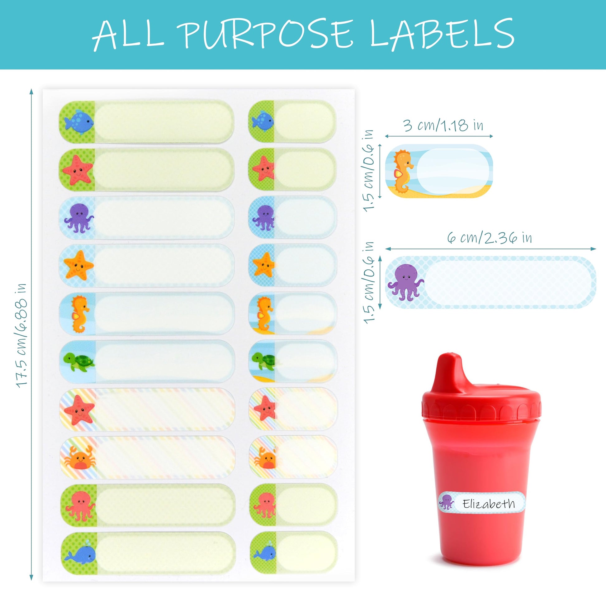 QIVIP - Etiquetas de nombre multiusos surtidas, impermeables, aptas para lavavajillas, microondas, autolaminadas, 85 piezas