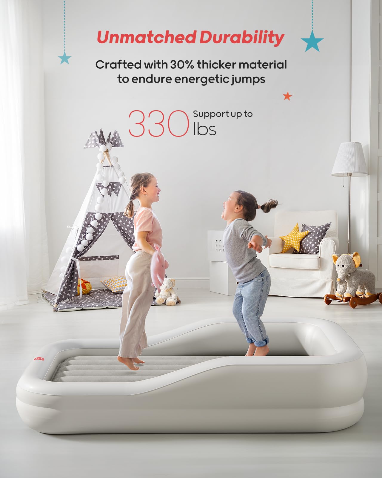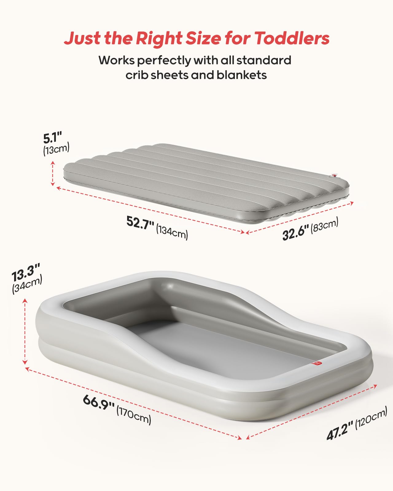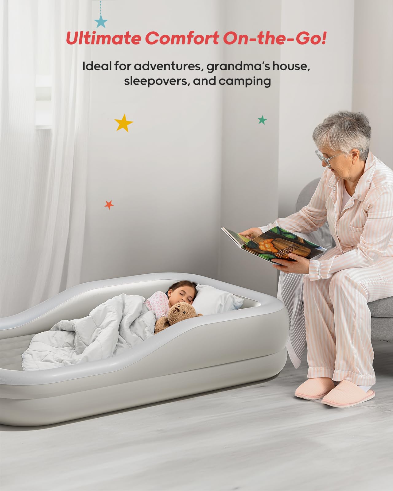 QPAU Cama inflable de viaje para niños pequeños con parachoques de seguridad de 3 lados