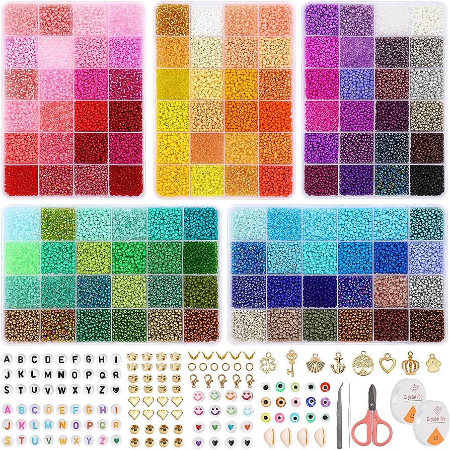 ALMACENAMIENTO ORDENADO: Le ofrecemos cuentas en 120 colores que pueden crear innumerables posibilidades. Colocamos las cuentas en cinco cajas de almacenamiento de 24 compartimentos según el color para evitar el desorden. Las cuentas del mismo color están dispuestas juntas, para que puedas encontrar fácilmente el color y el estilo que necesitas.