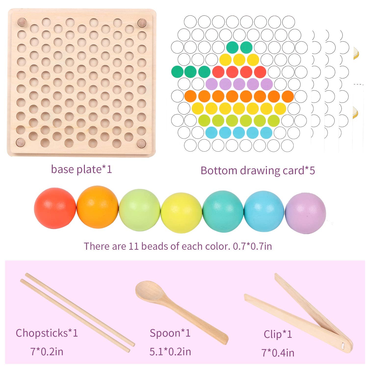 QZMTOY Juego de cuentas de madera con clavijas, rompecabezas de clasificación de colores