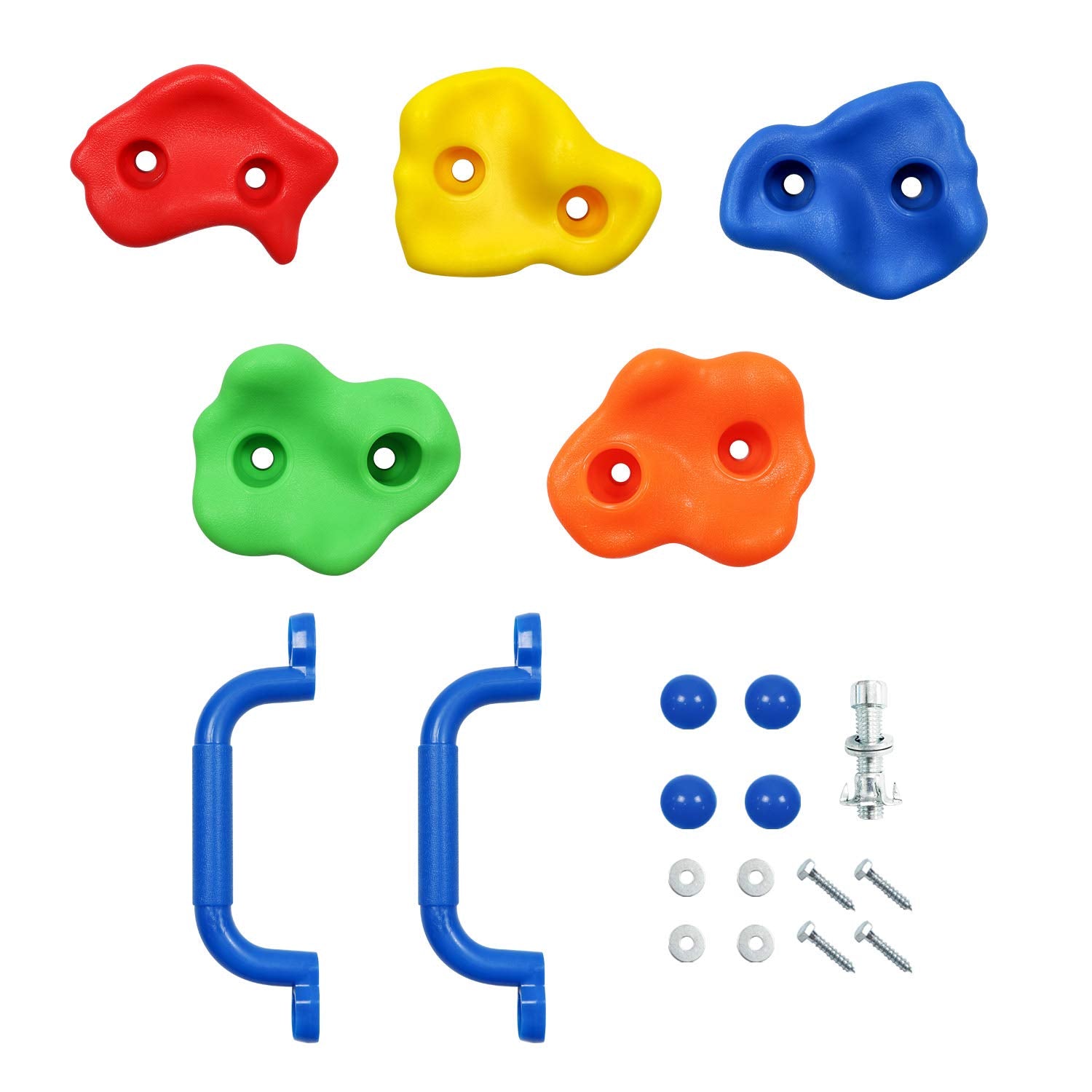 Rainbow Craft Soportes de escalada en roca de mono para niños, 20 soportes de pared de roca, 2 asas y 1 cuerda de escalada anudada de 8 pies