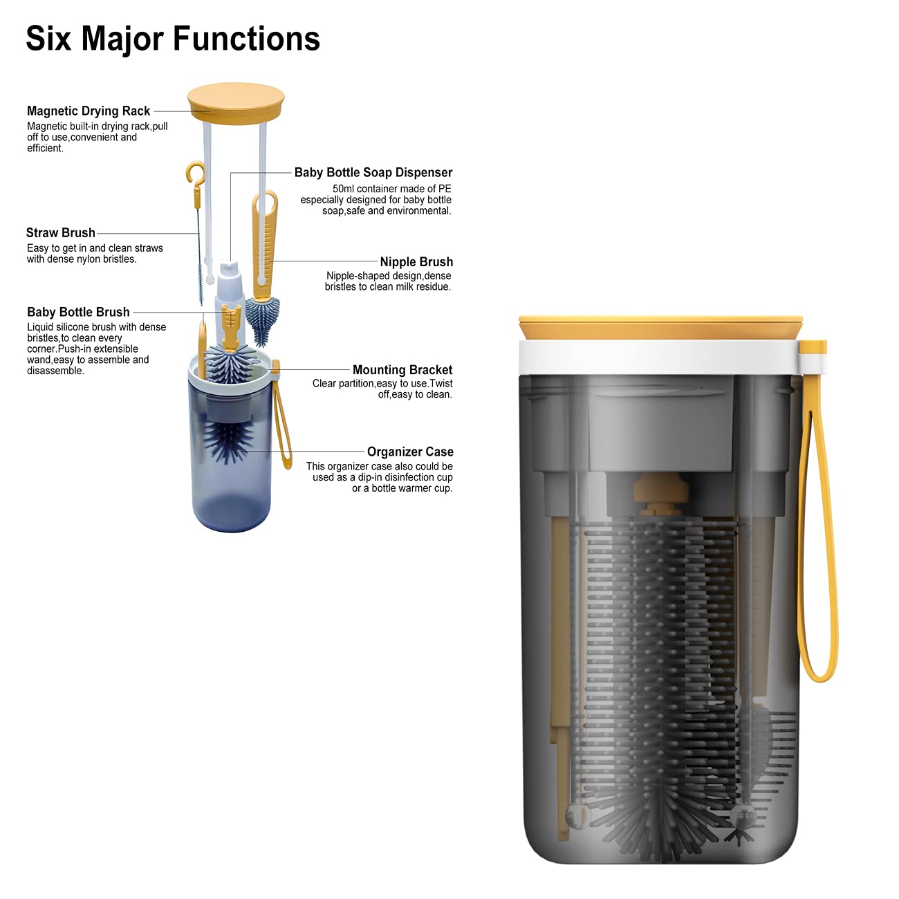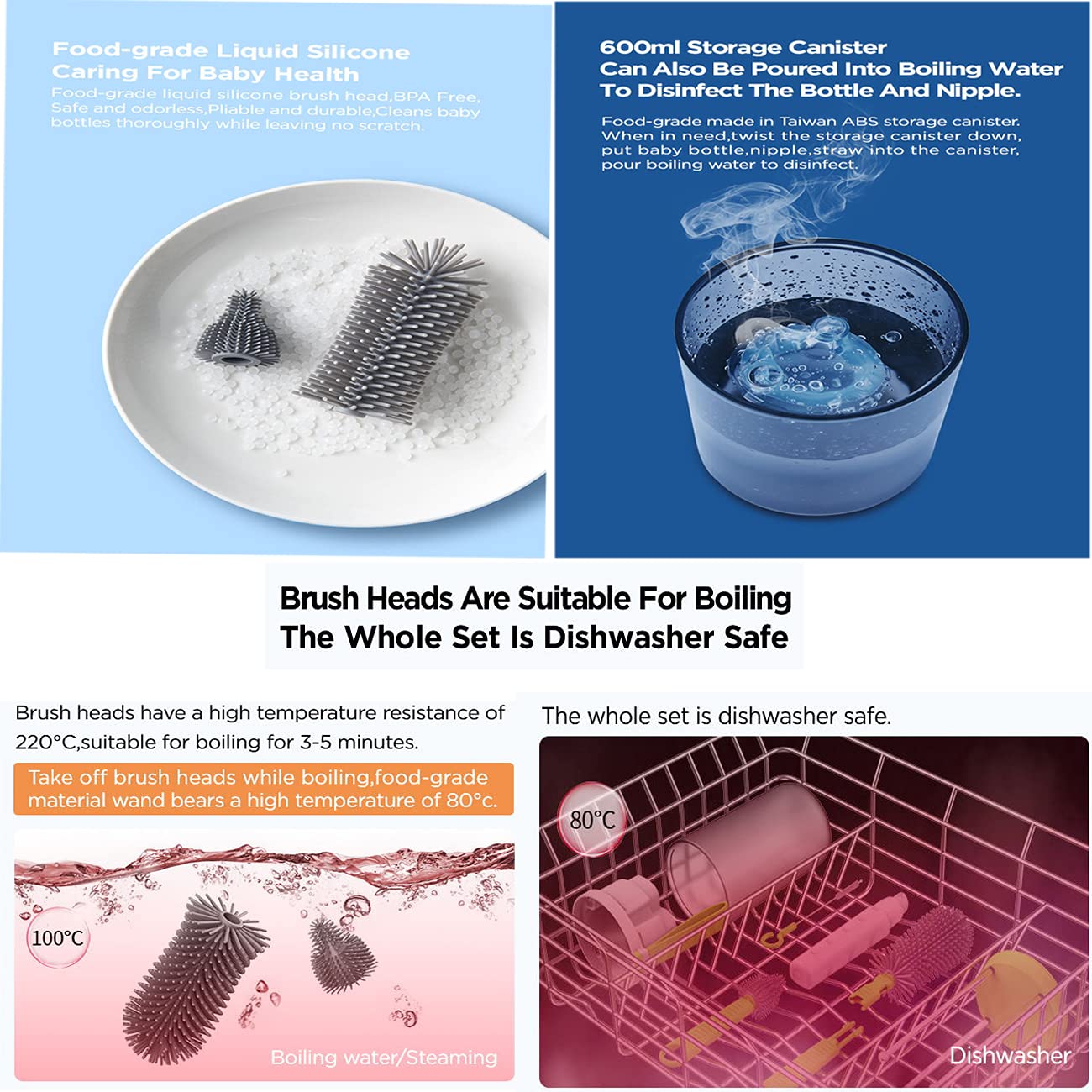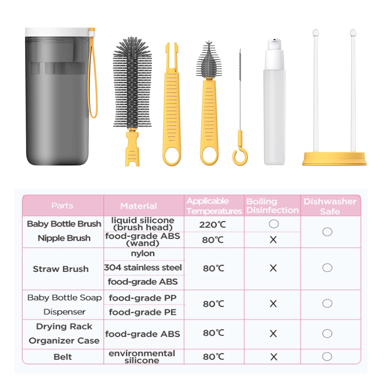Rejilla de secado de biberones de viaje con juego de cepillos de limpieza