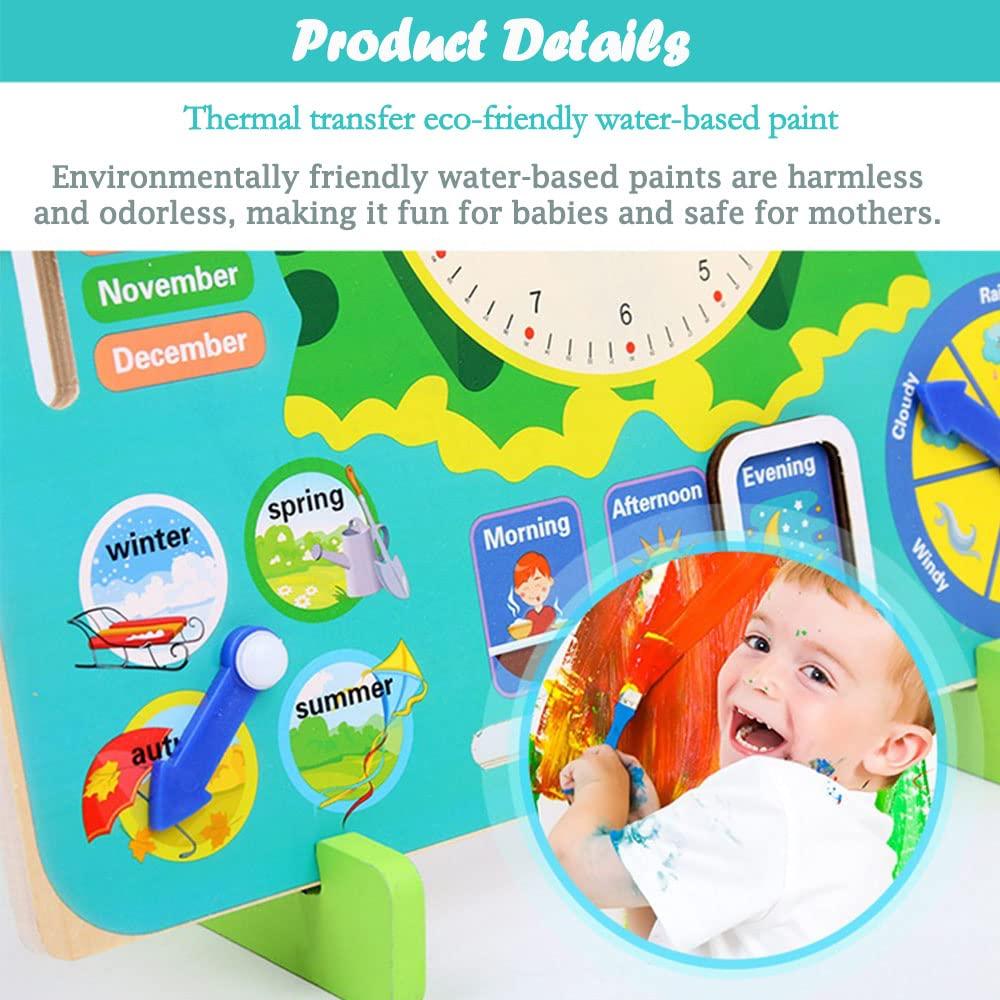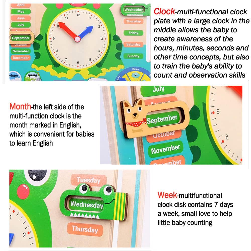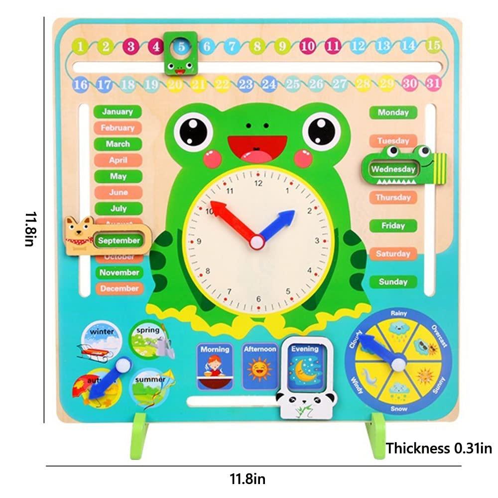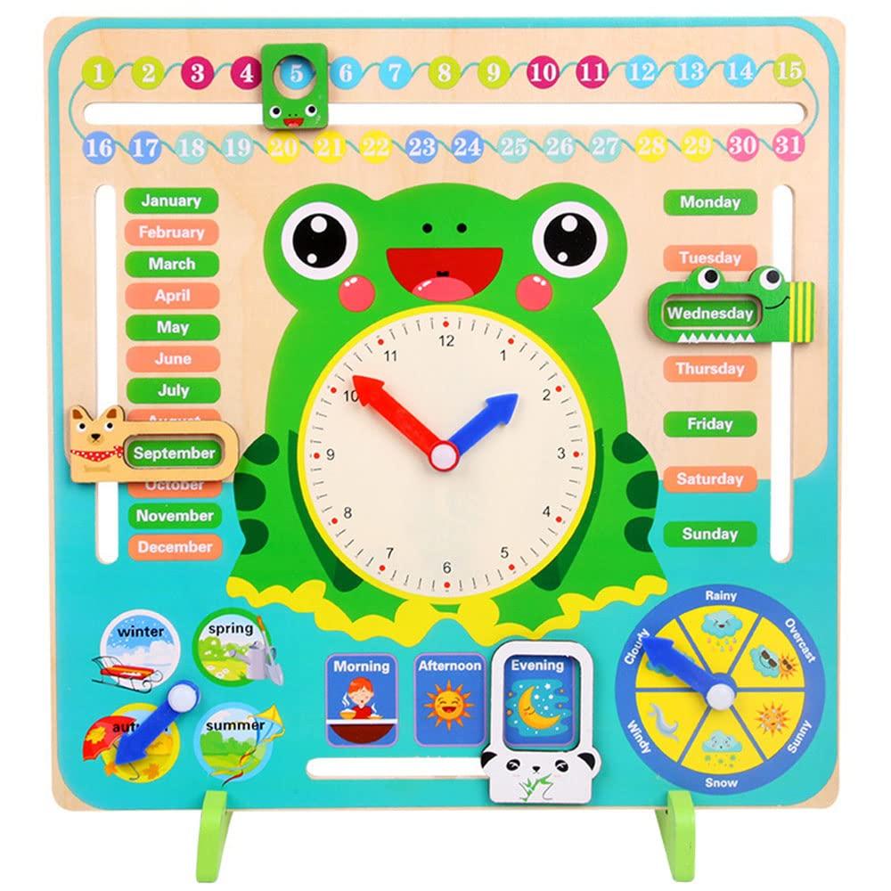 Reloj de aprendizaje para niños, de 3 a 14 años, multifuncional, con rana, de madera, calendario, tiempo, de enseñanza, educativo y divertido