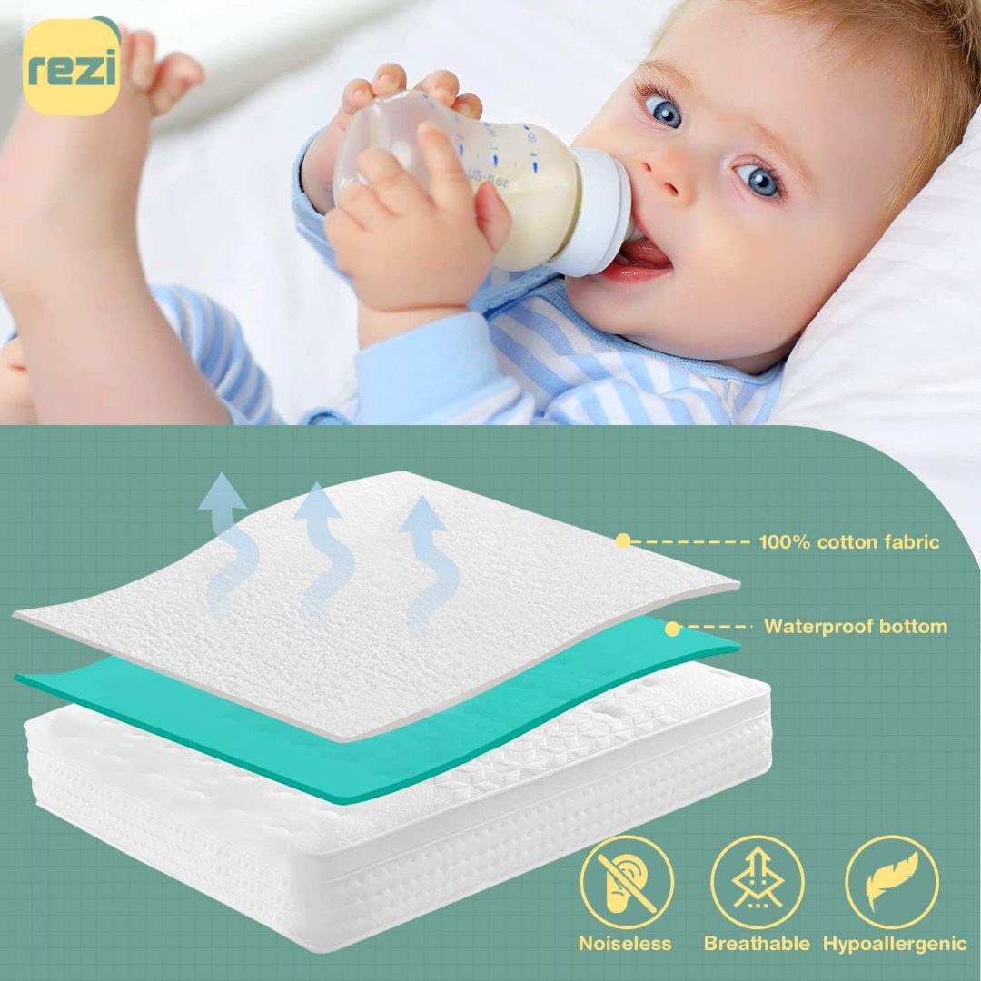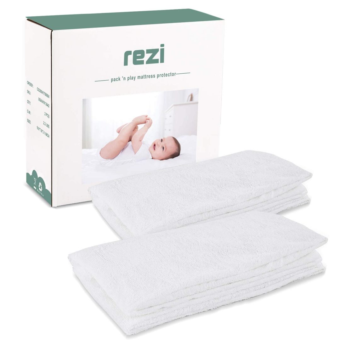 Rezi Pack N Play - Protector de colchón (2 unidades, impermeable, 100 % algodón