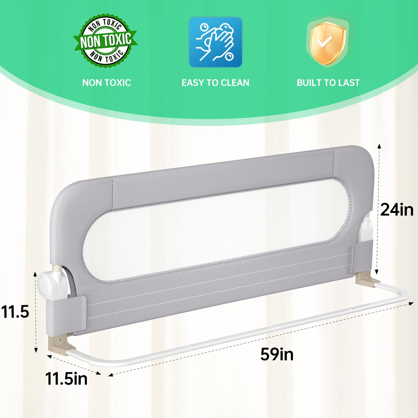 Riel plegable para cama de bebé con sistema de seguridad de anclaje reforzado (gris, 59 x 23.6 pulgadas)