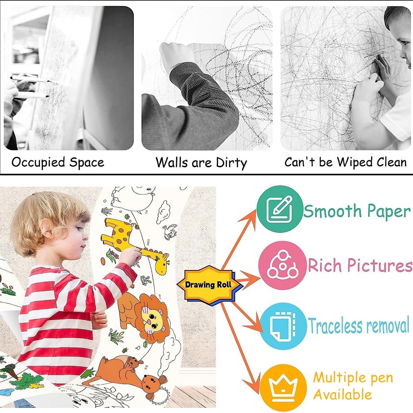 Rollo de papel para colorear de gran tamaño para niños 120x 15 pulgadas