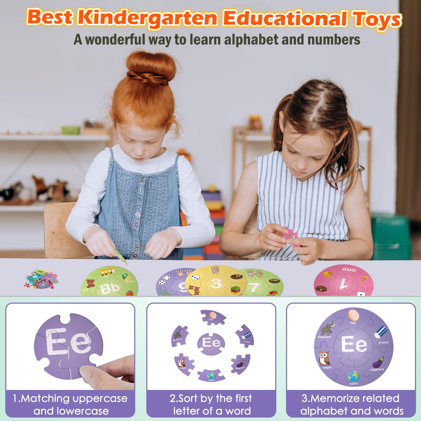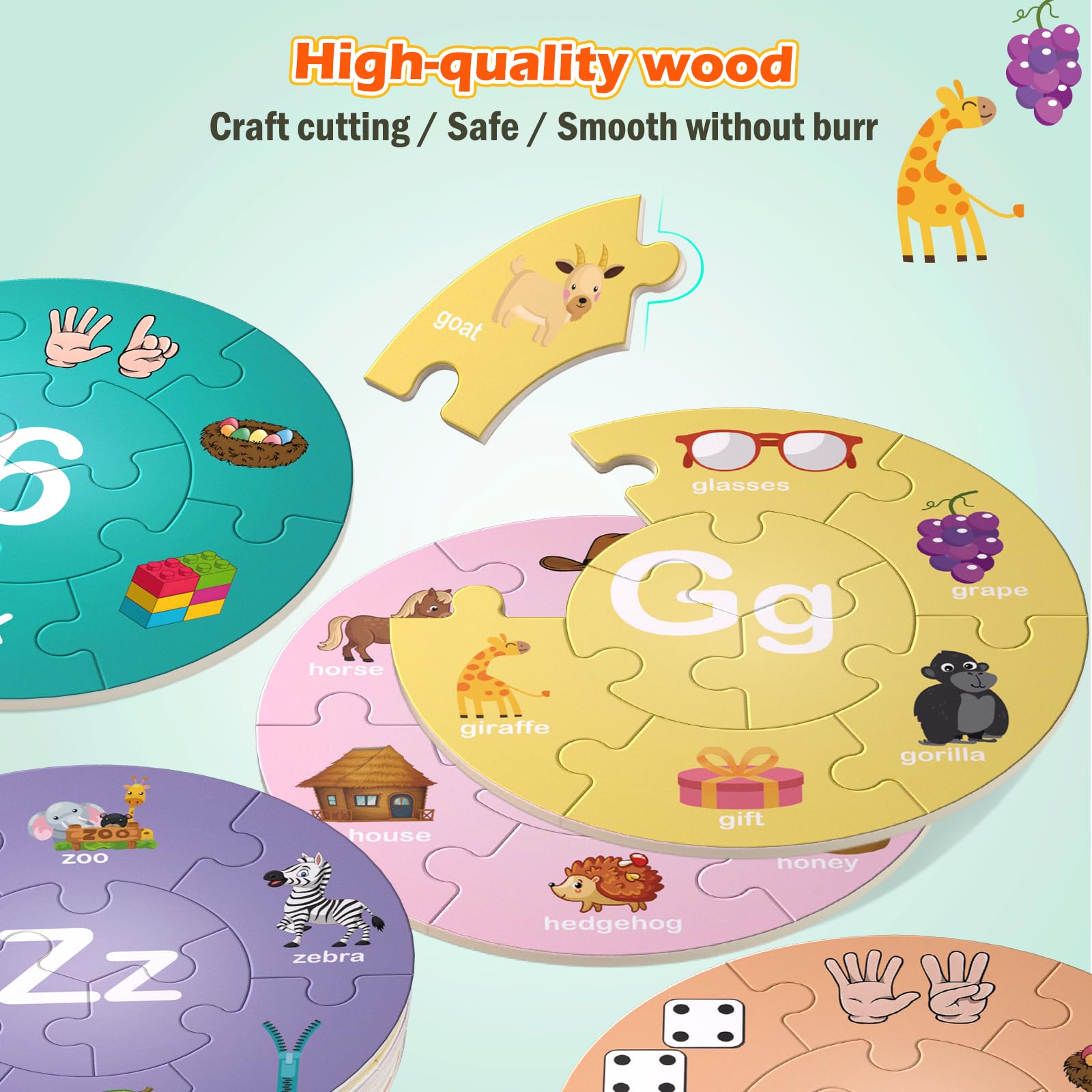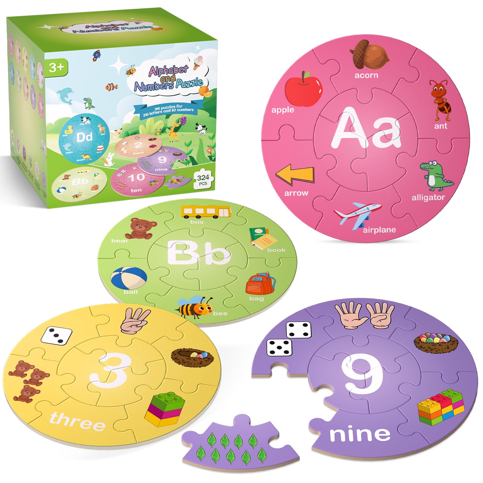 Rompecabezas de madera con números y letras para niños de 3 a 5 años