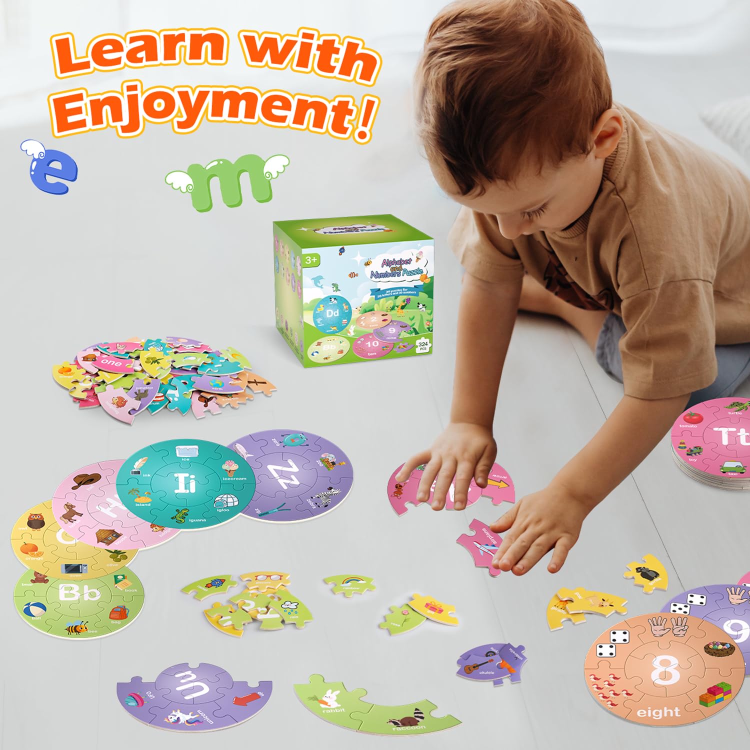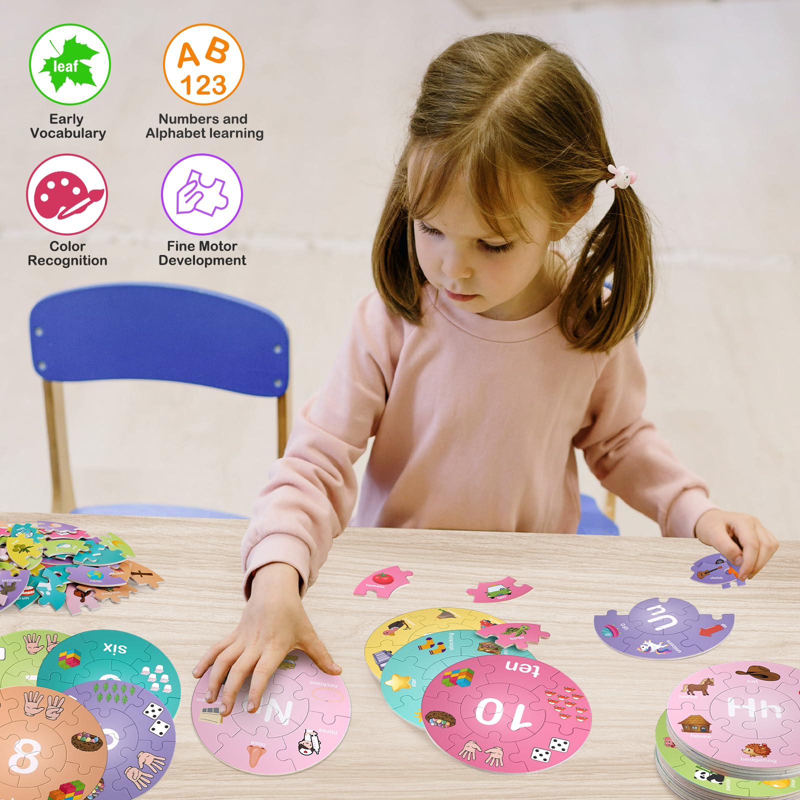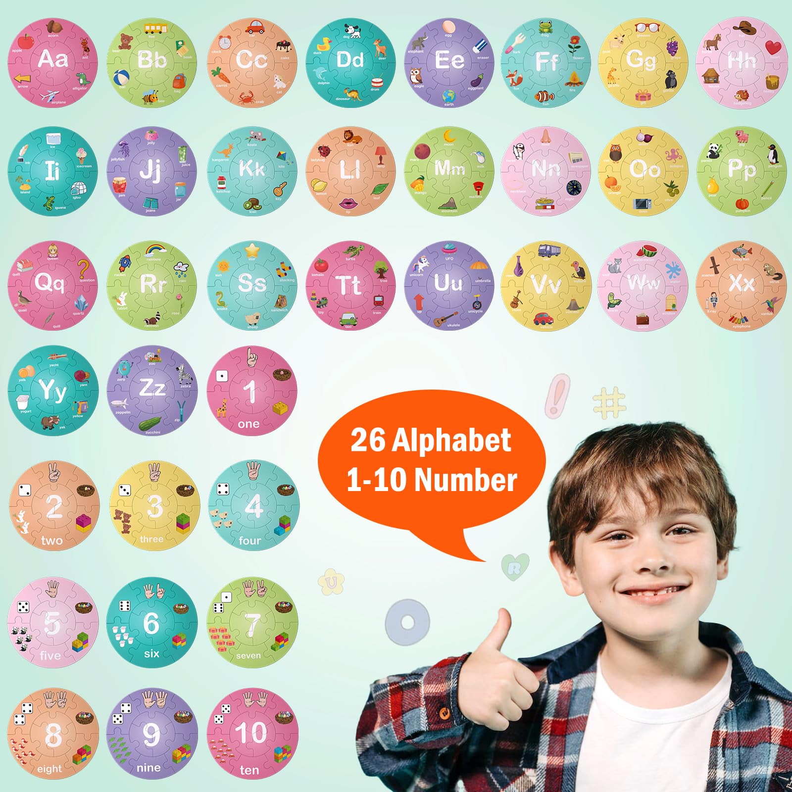 Rompecabezas de madera con números y letras para niños de 3 a 5 años