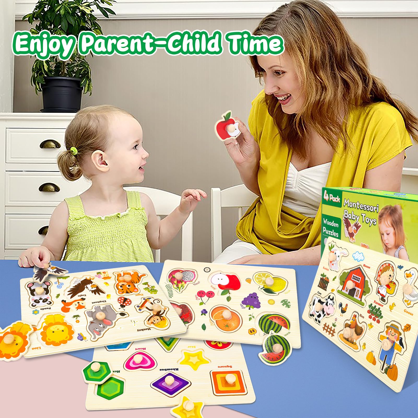 Rompecabezas de madera para niños pequeños, paquete de 4