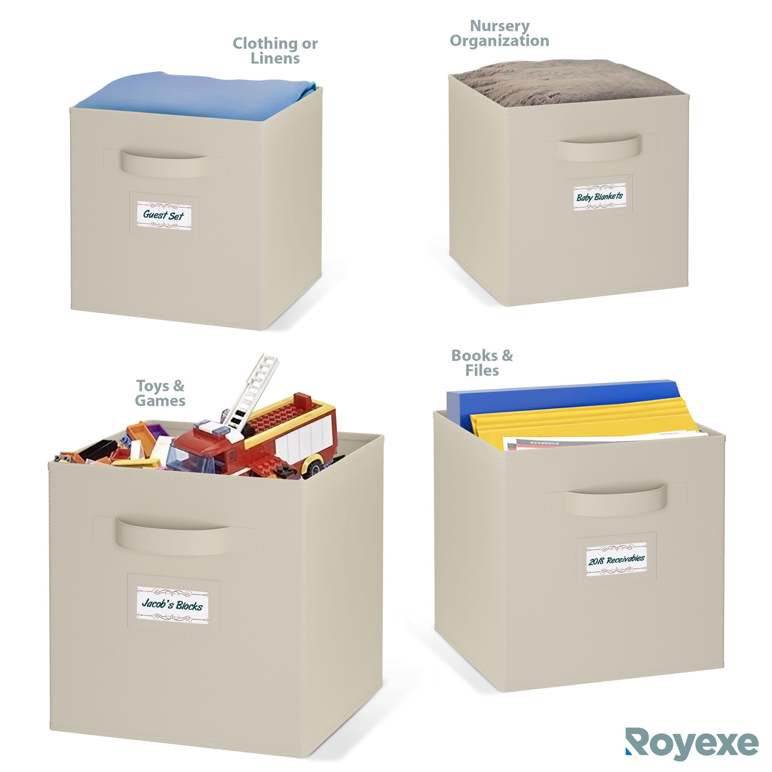 Royexe cubos de almacenamiento, de tela, plegables con asas dobles, ventana con etiqueta