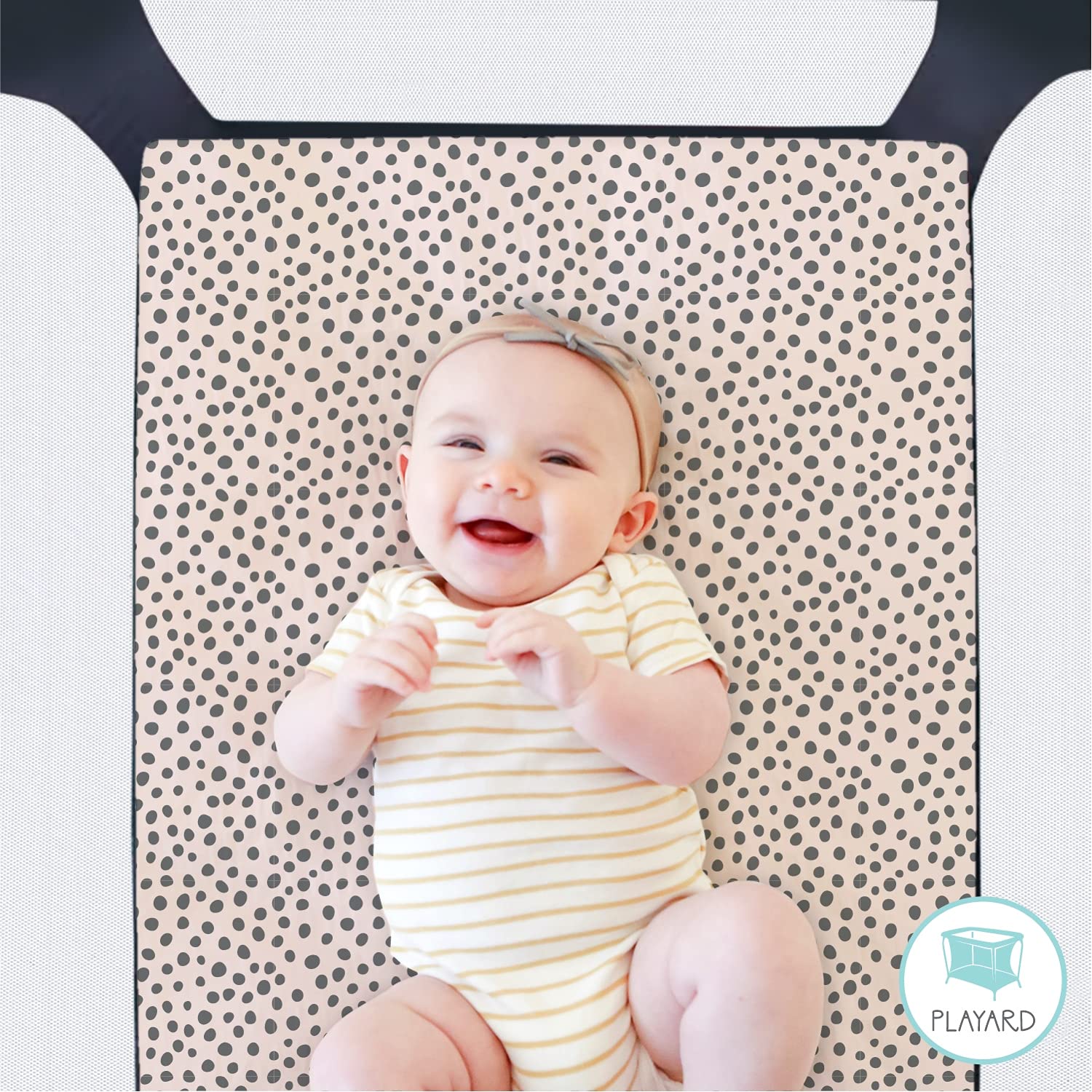 - Ajuste perfecto: este juego de ropa de cama incluye dos sábanas ajustables multiusos diseñadas para adaptarse a un patio de recreo, mini cuna o pack n play con colchones de 3 a 5 pulgadas de profundidad y entre dimensiones de 24 x 38 y 27 x 39 pulgadas. El elástico alrededor garantiza un ajuste seguro y cómodo.