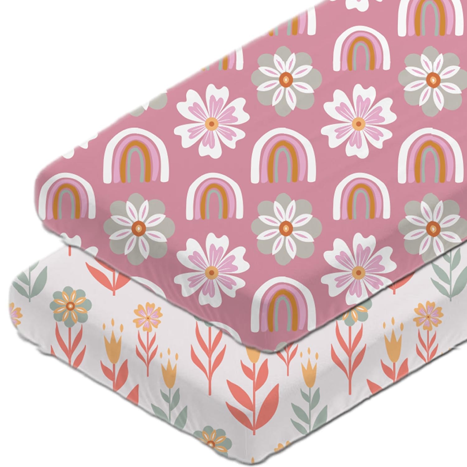 Sábanas para encierro de arcoíris y flores, paquete de 2