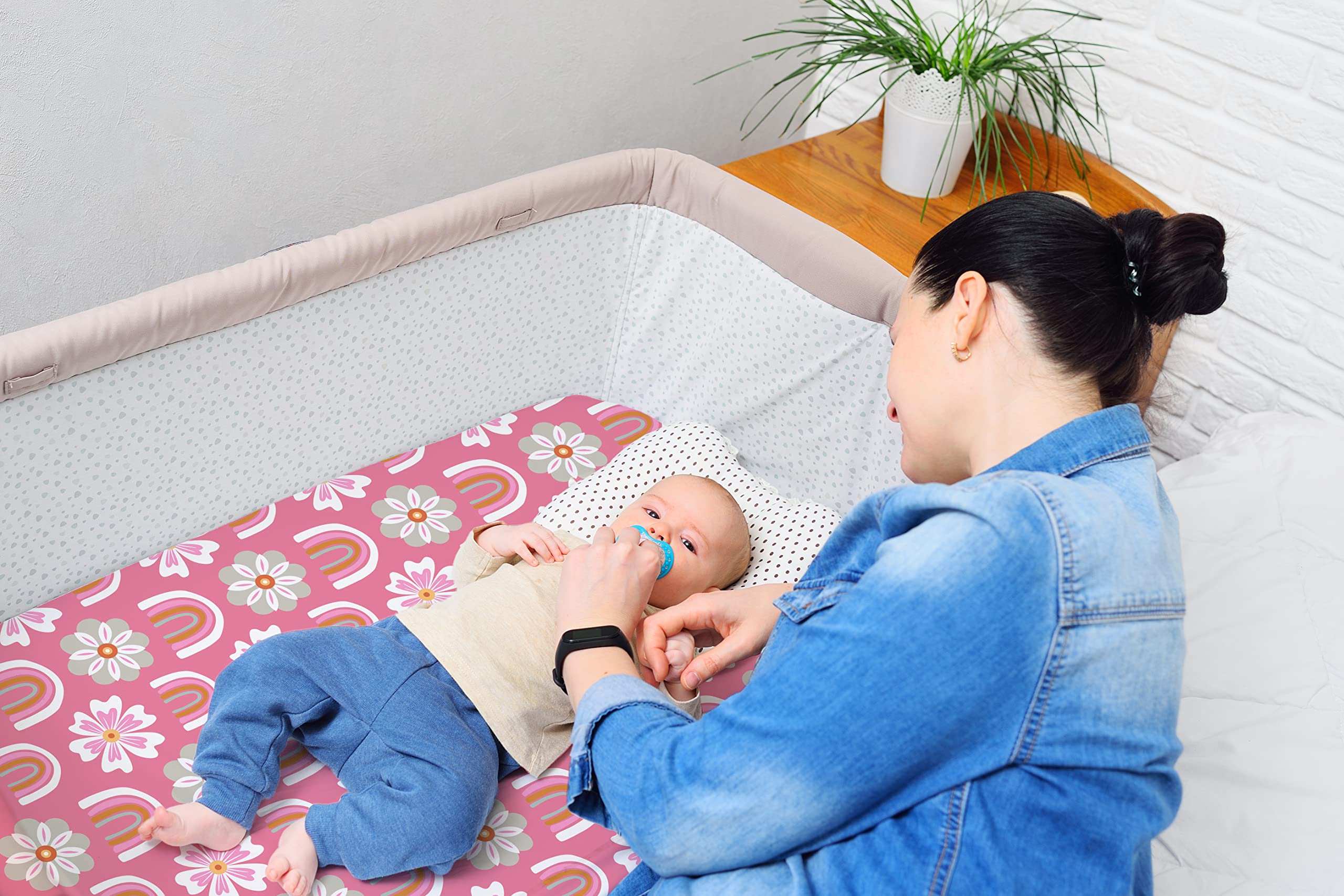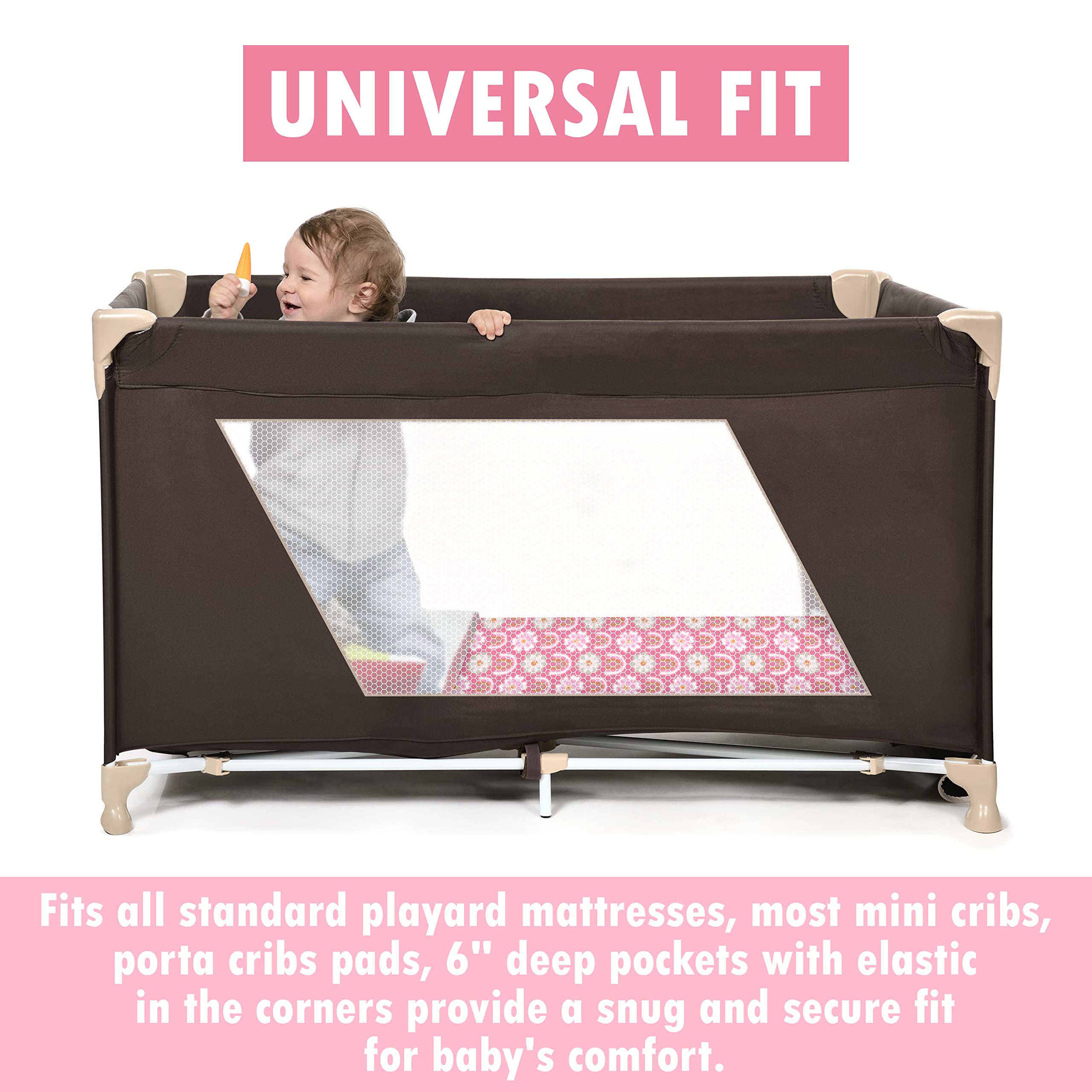Pack and Play están hechas de una mezcla de algodón única, libre de formaldehído y coloreadas con tintes libres de toxinas, lo que garantiza la seguridad y comodidad de tu bebé. La robusta banda elástica, cosida a 360 grados alrededor, garantiza un ajuste seguro durante toda la noche, evitando que se amontonen y promuevan el sueño ininterrumpido. Experimenta la tranquilidad con nuestras sábanas que priorizan la comodidad y la seguridad de tu bebé.