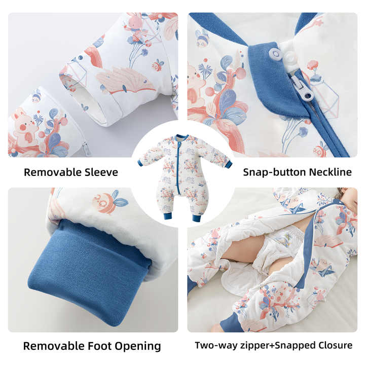 Saco de dormir para bebé de 0 a 9 meses, mangas removibles de algodón de bambú y temperatura constante, 2,5 TOG, talla S