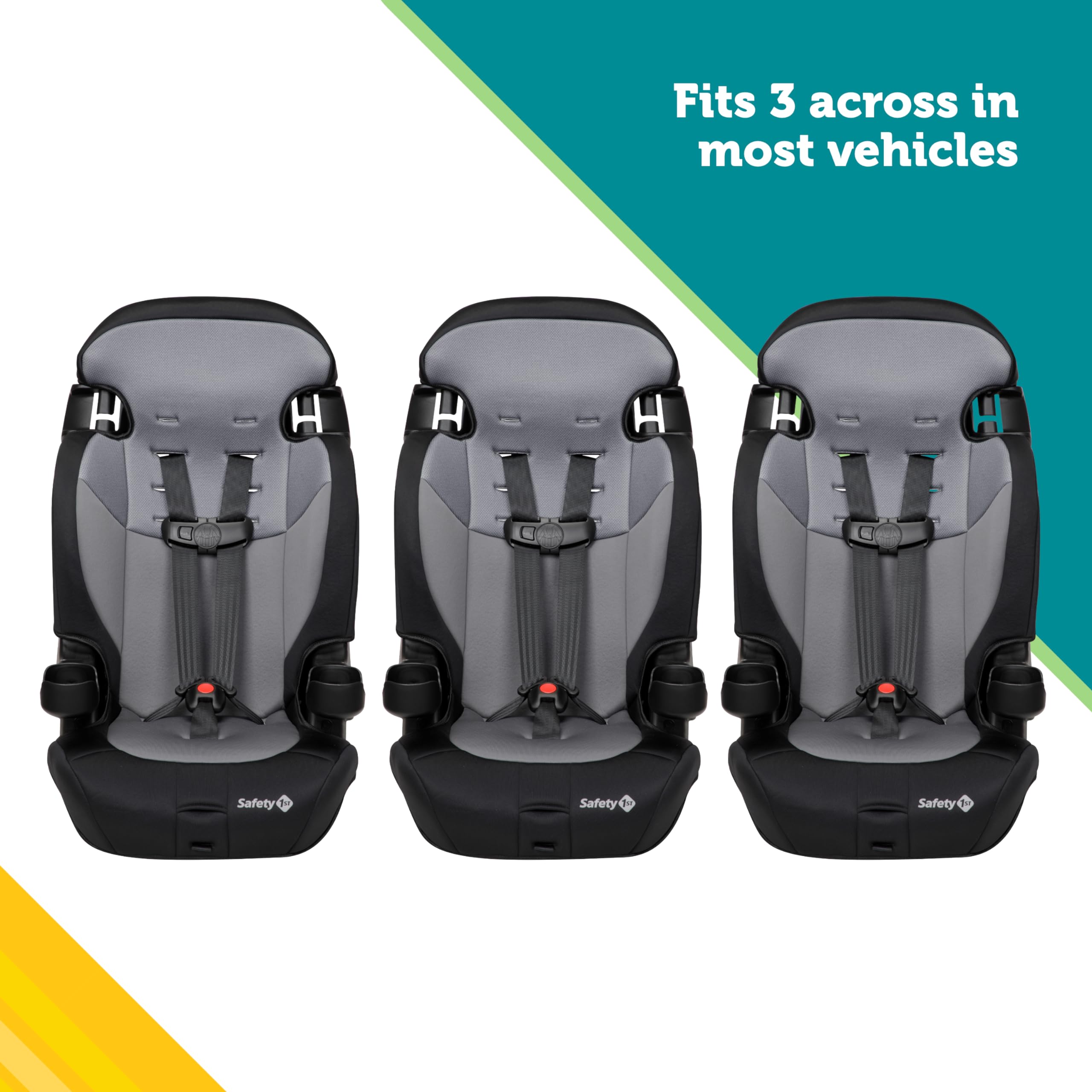 Se adapta a 3 ACROSS: Ideal para familias numerosas o coches compartidos, este asiento de coche 2 en 1 para orientación hacia adelante con arnés y refuerzo de posicionamiento de cinturón con respaldo alto está diseñado para adaptarse a tres en el asiento trasero de la mayoría de los vehículos.