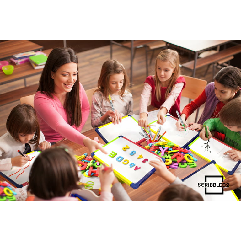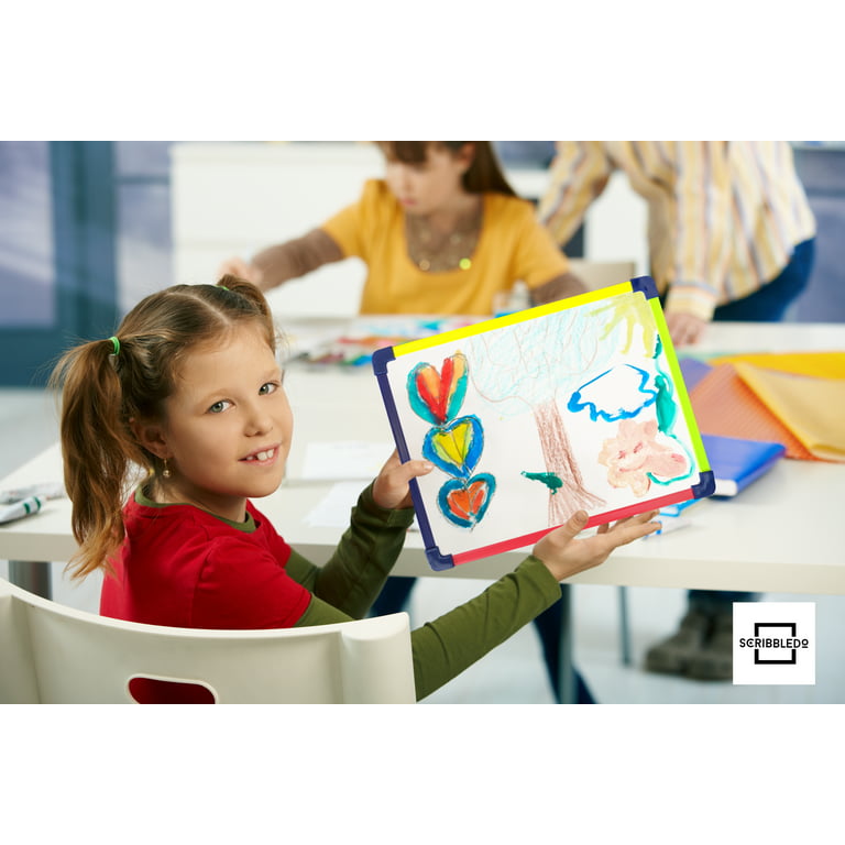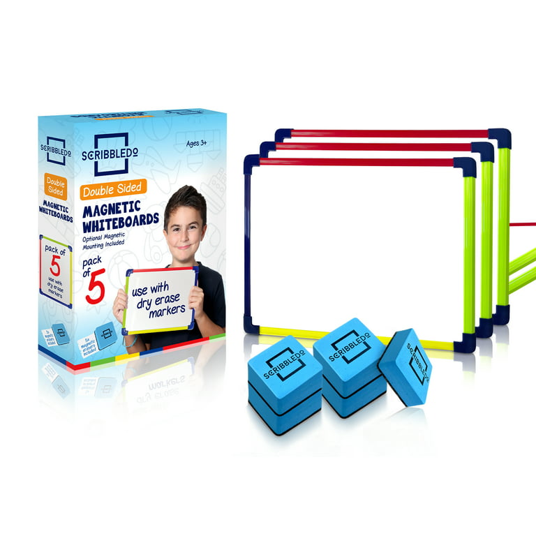 Scribbledo- Pizarras blancas magnéticas de borrado en seco con marco de colores, paquete de 5