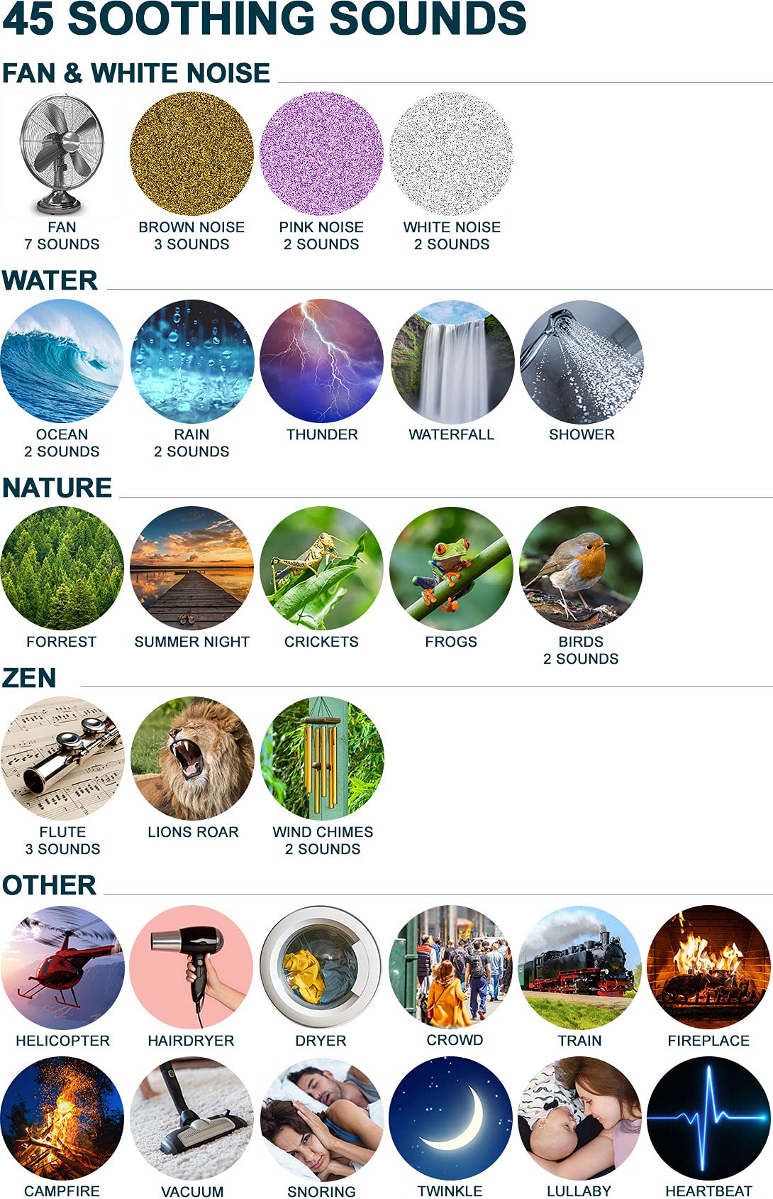 Serene Evolution Máquina de ruido blanco portátil de 45 sonidos