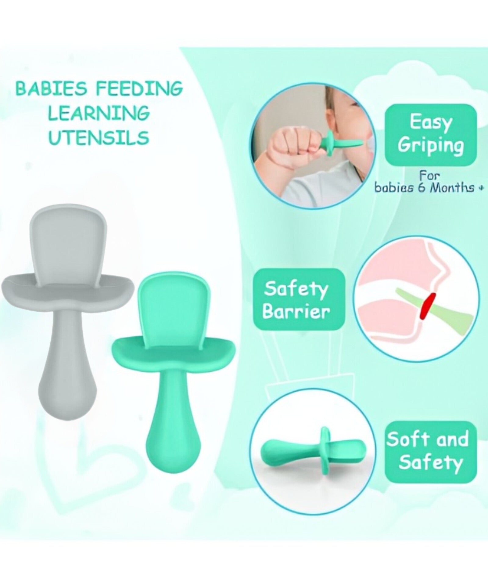 Set de 2 cucharas de silicona libre de BPA, gris y turquesa