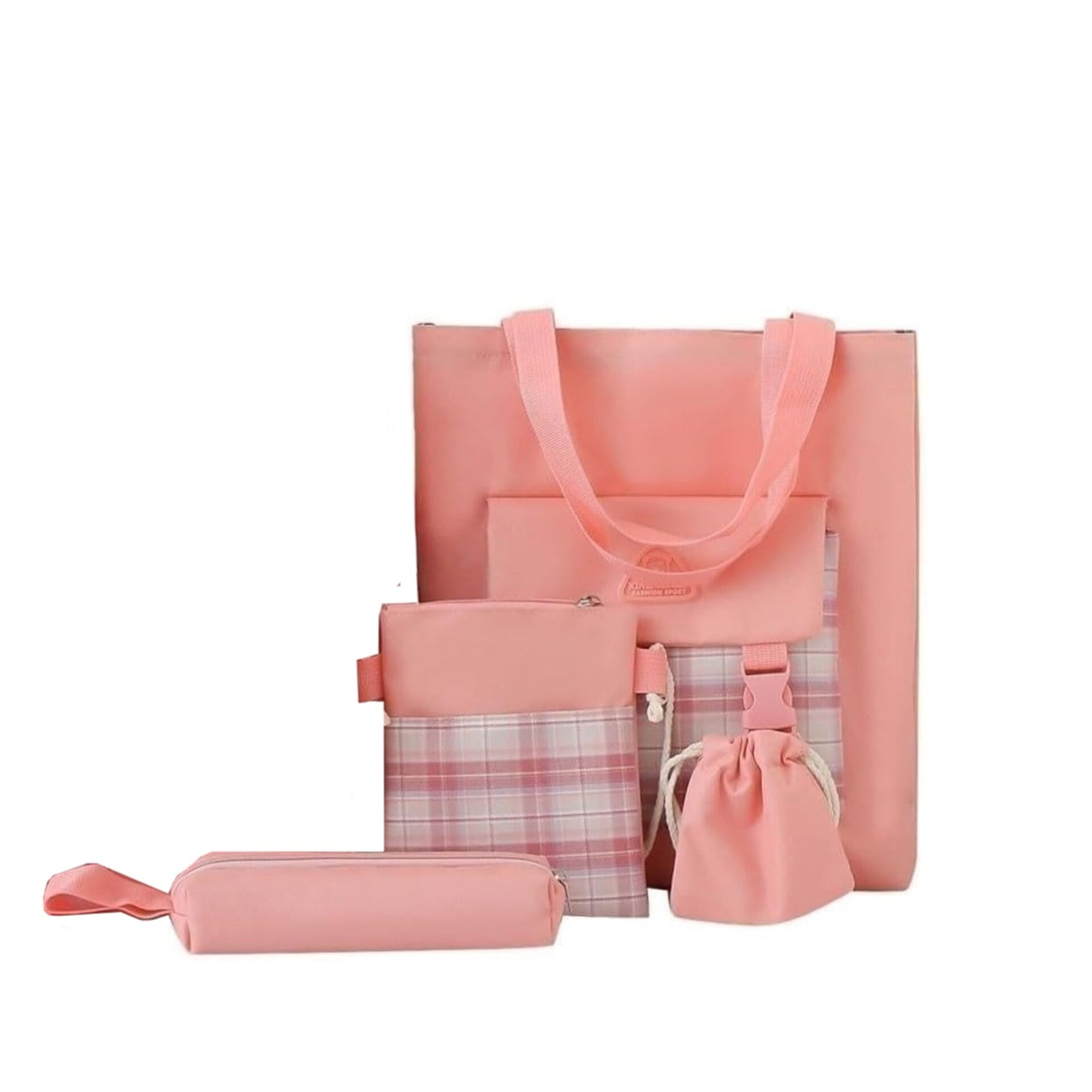 1 bolsa para lápices, 1 bolsa cruzada, 1 bolsa de mano, 1 monedero