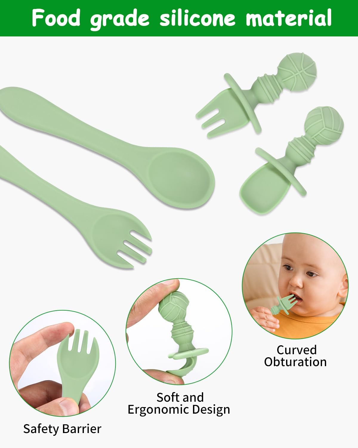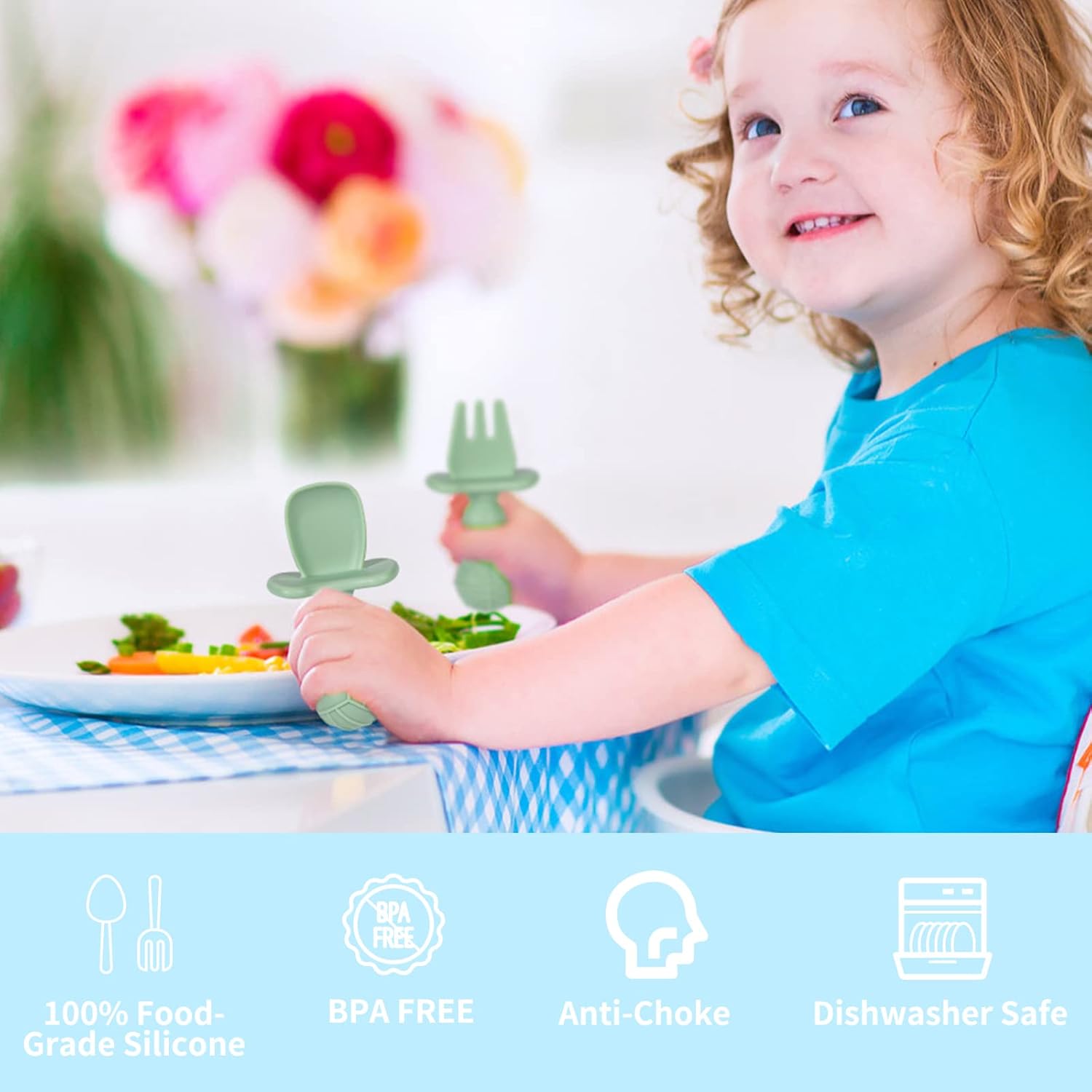 【Alimentación independiente】La cuchara y el tenedor para niños pequeños están diseñados para adaptarse al movimiento natural y al agarre de las manos del bebé, fomentando el destete dirigido por el bebé, y la cuchara tiene el tamaño justo para ayudar al bebé a alimentarse solo.