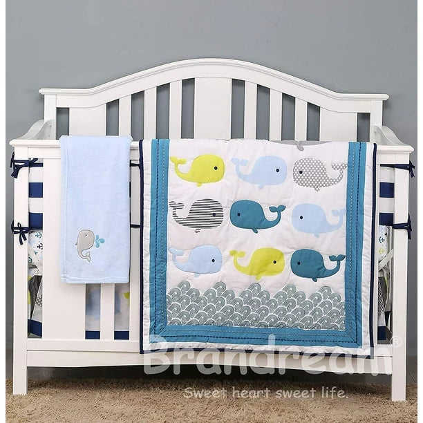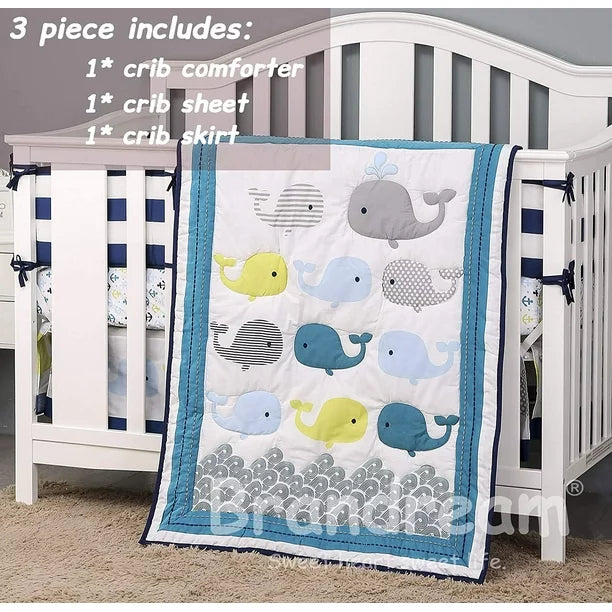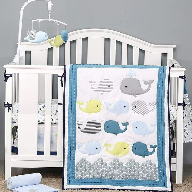 Set de Cuna Ballenas, 3 piezas, edredón, sábana y enagua.