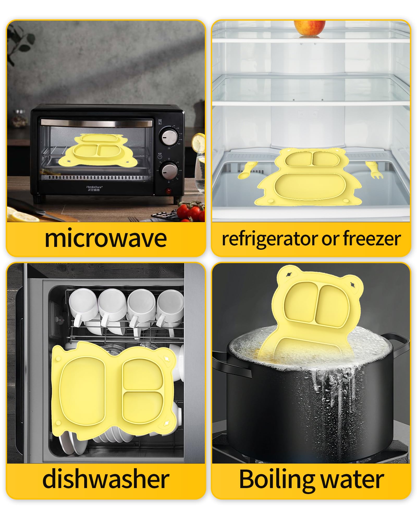 Set de plato dividido con cubiertos y babero de Silicon