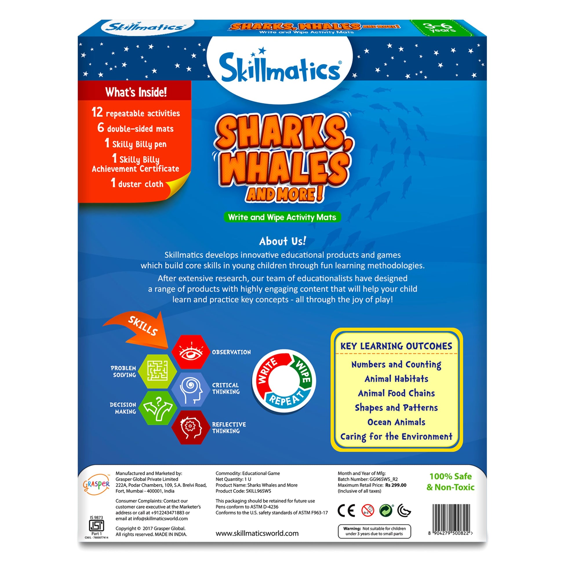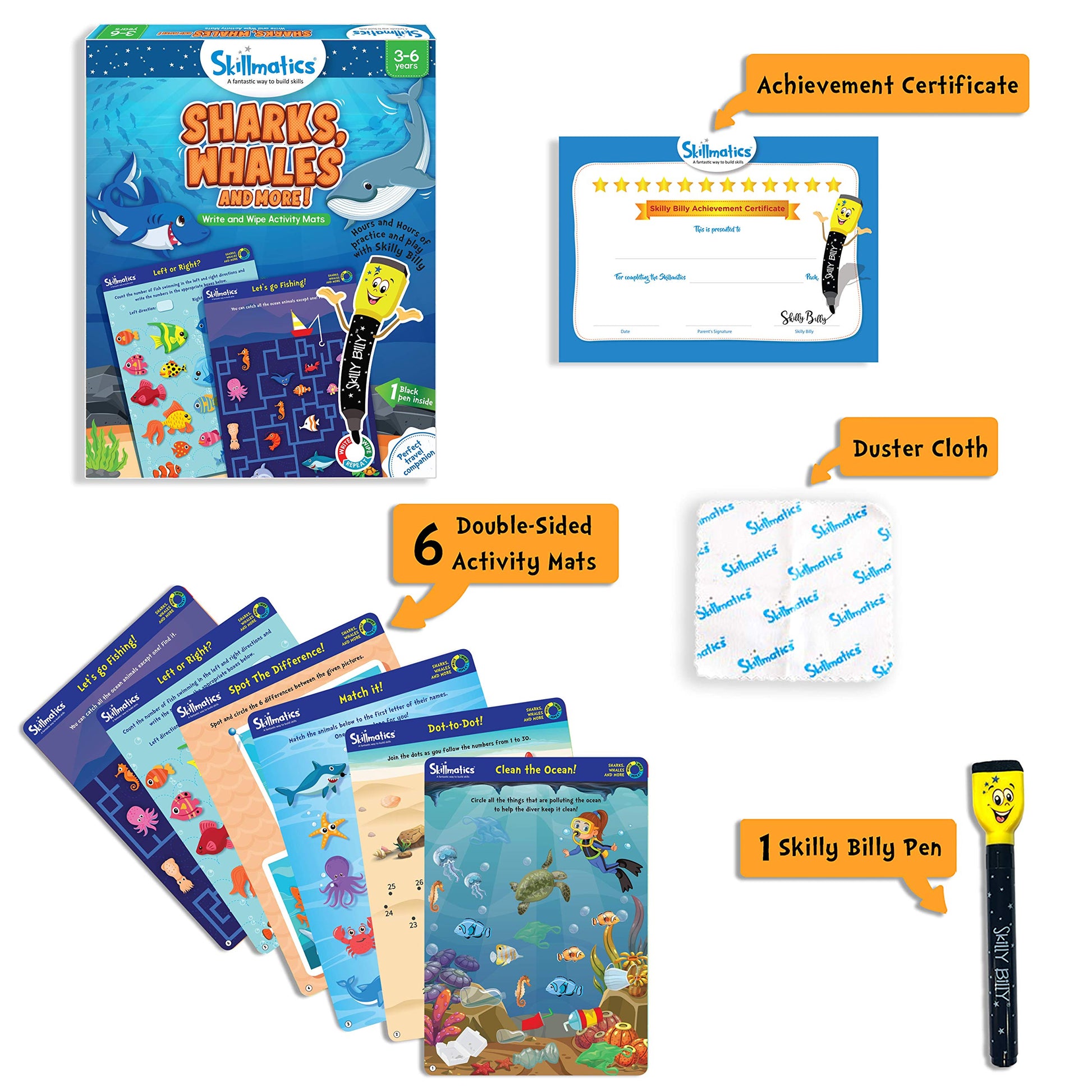 Skillmatics Juego educativo: tiburones, ballenas y más, alfombrillas de actividades reutilizables