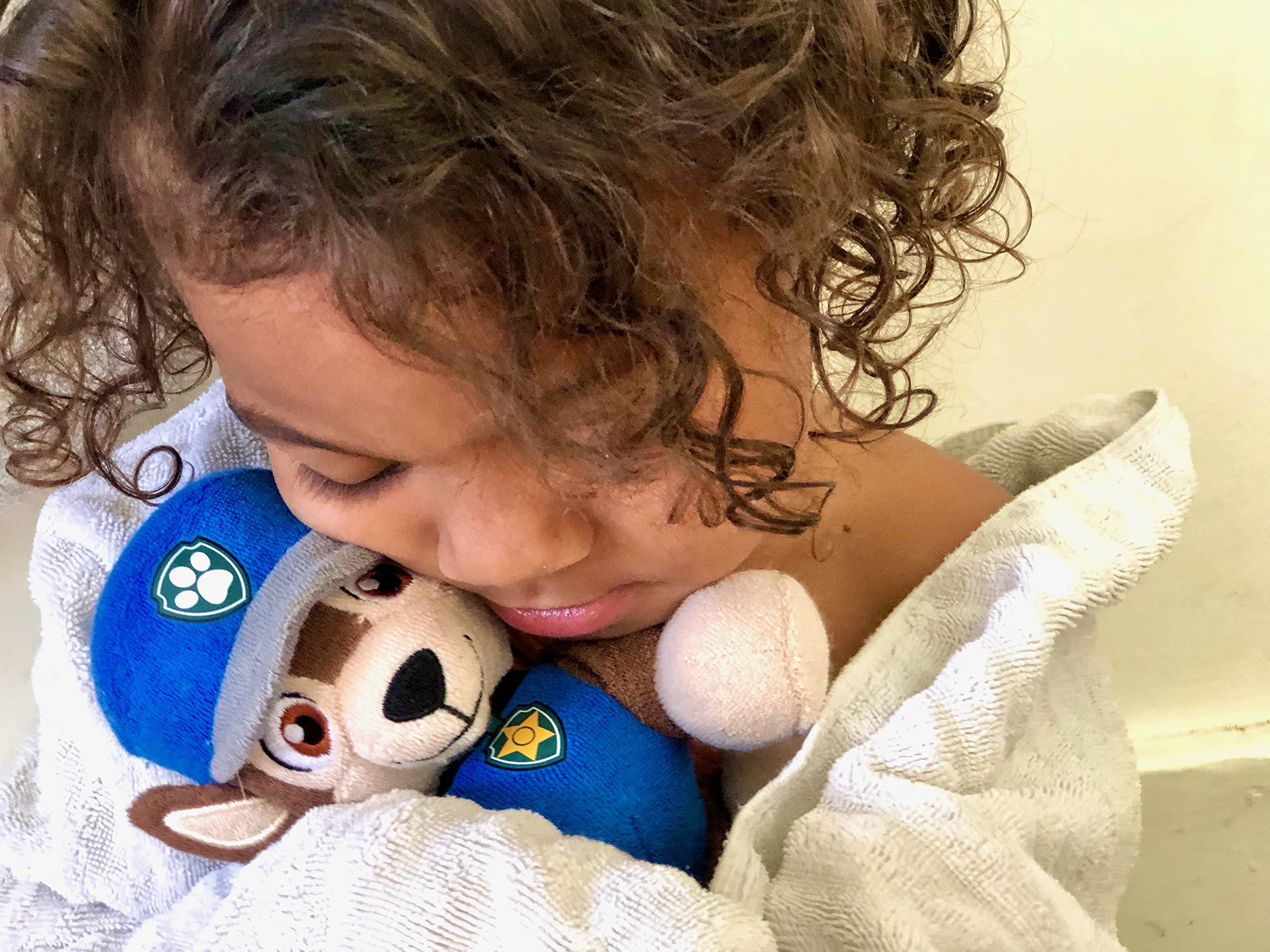 SoapSox Exfoliante de baño para niños, esponja de tela de lavado de juguete suave Chase