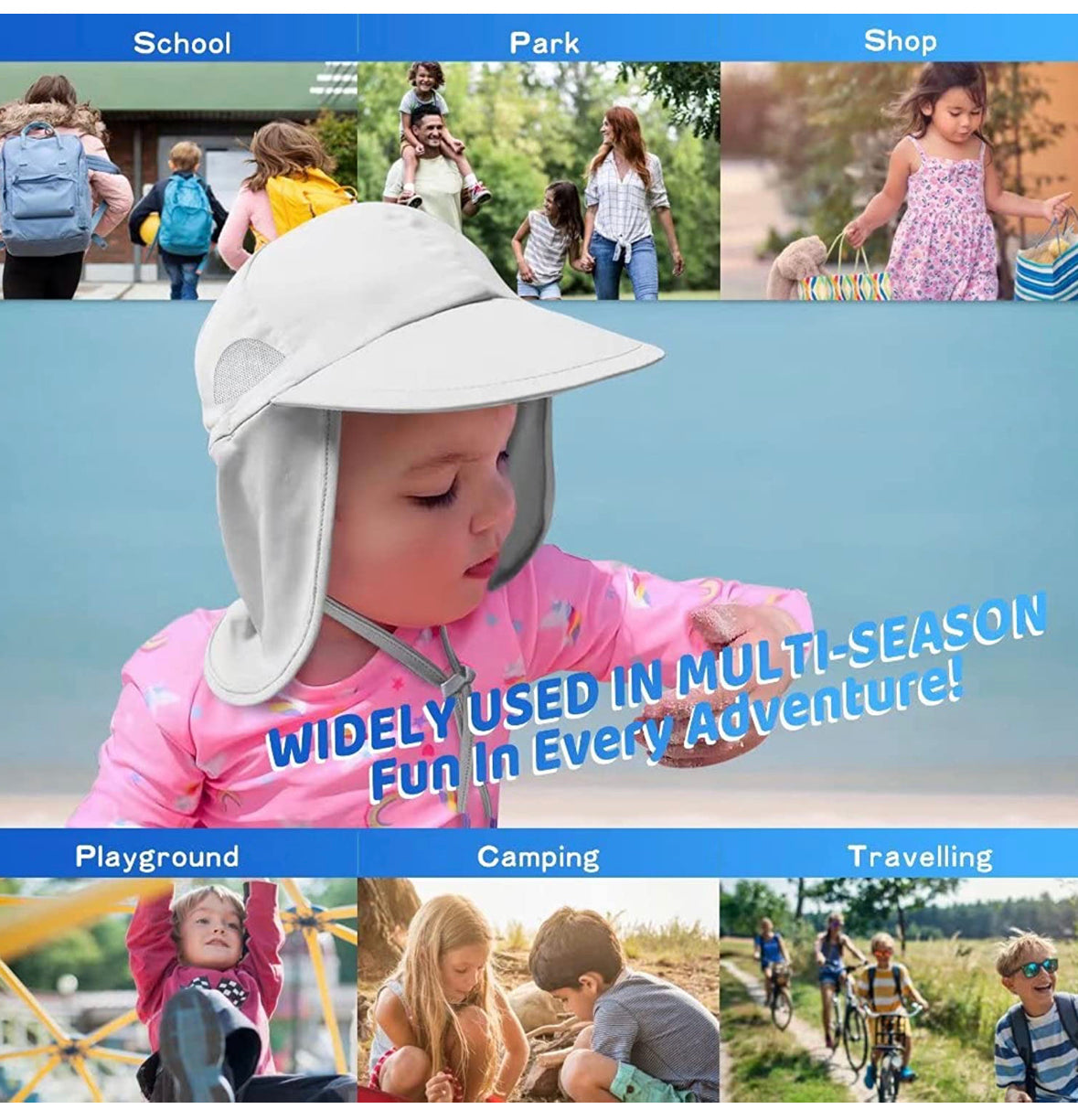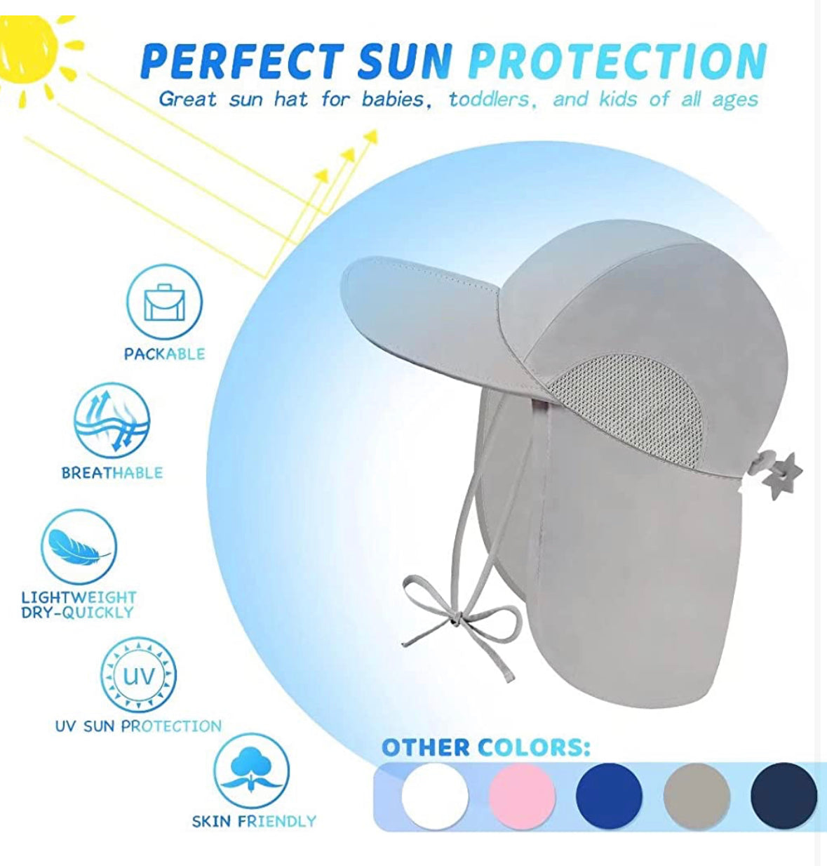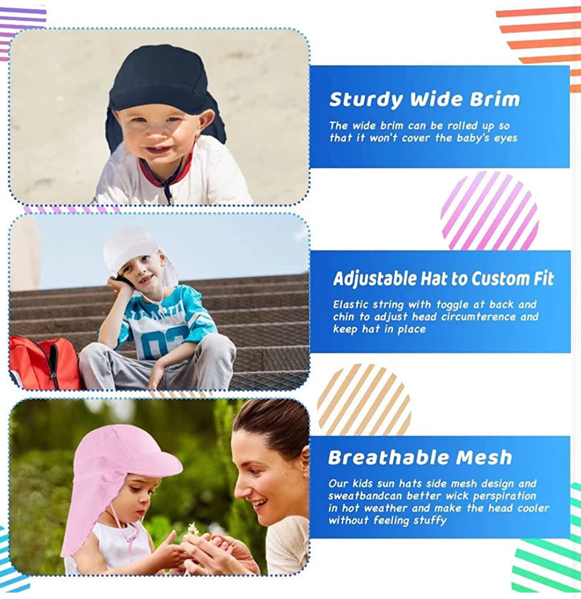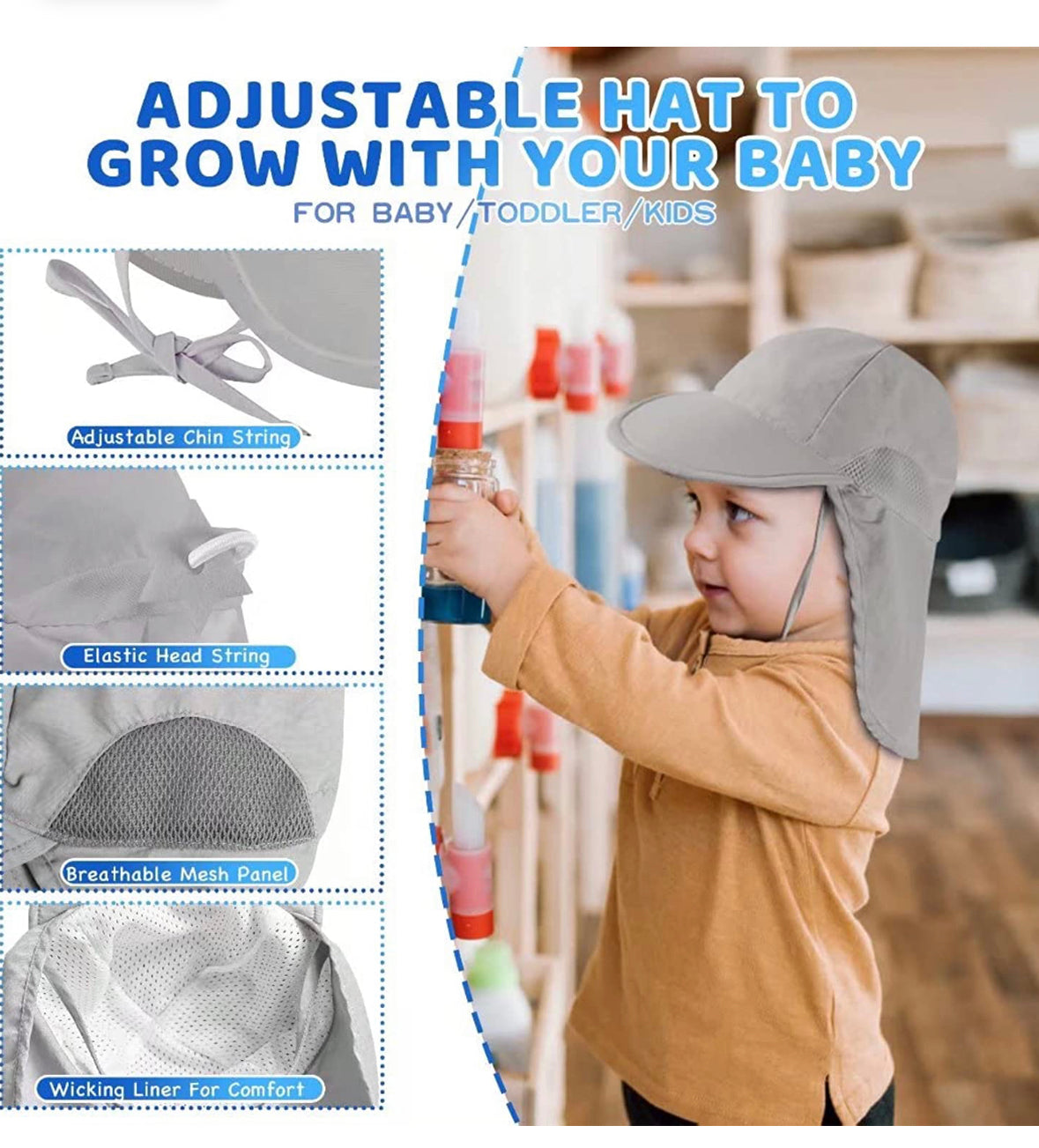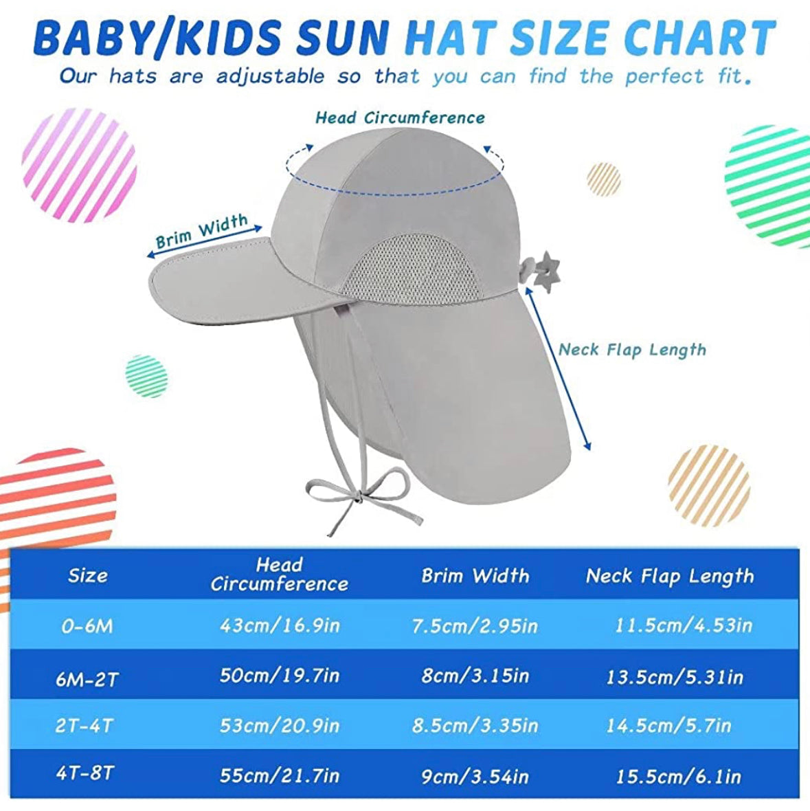 Protección solar perfecta: nuestros sombreros de sol imprescindibles para bebé con un ala ancha y solapa de cuello larga, súper cómodos y protección solar durante todo el día para proteger la cabeza, el cuello y los ojos de tu pequeño, la protección UPF 50+ bloquea eficazmente la mayoría de los rayos UV en la delicada piel de los niños. Nota: Antes de comprar, asegúrate de que la circunferencia de la cabeza del niño se ajuste al tamaño del sombrero.