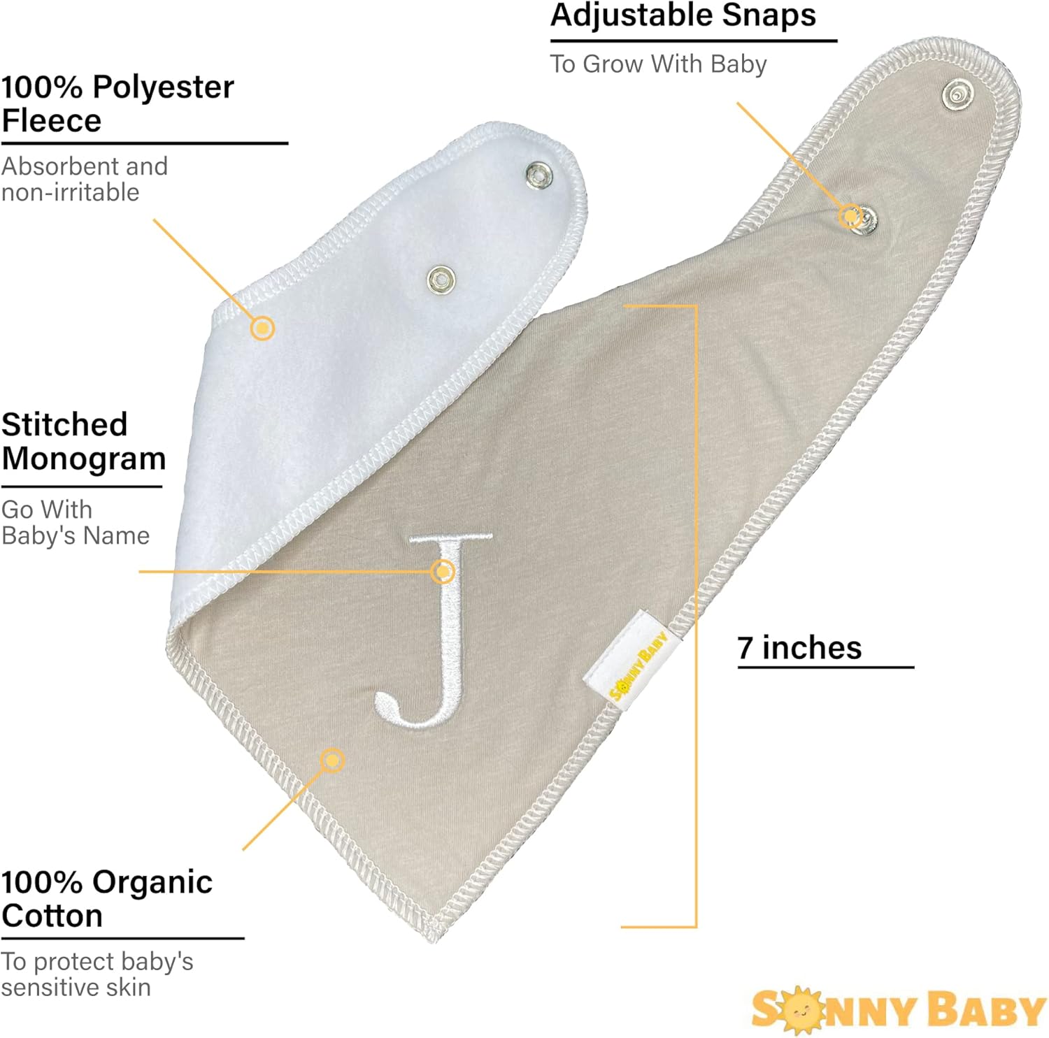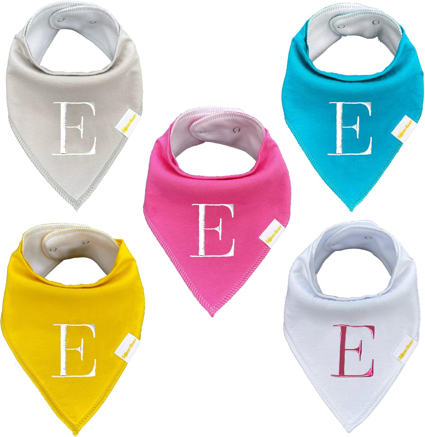 Sonny Baby Drool Bandana - Baberos orgánicos, 5 uds, letra E