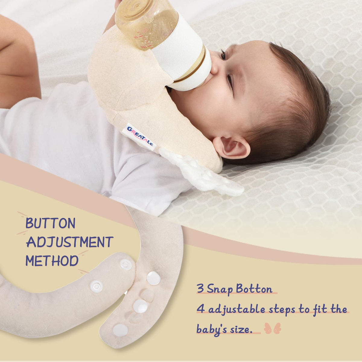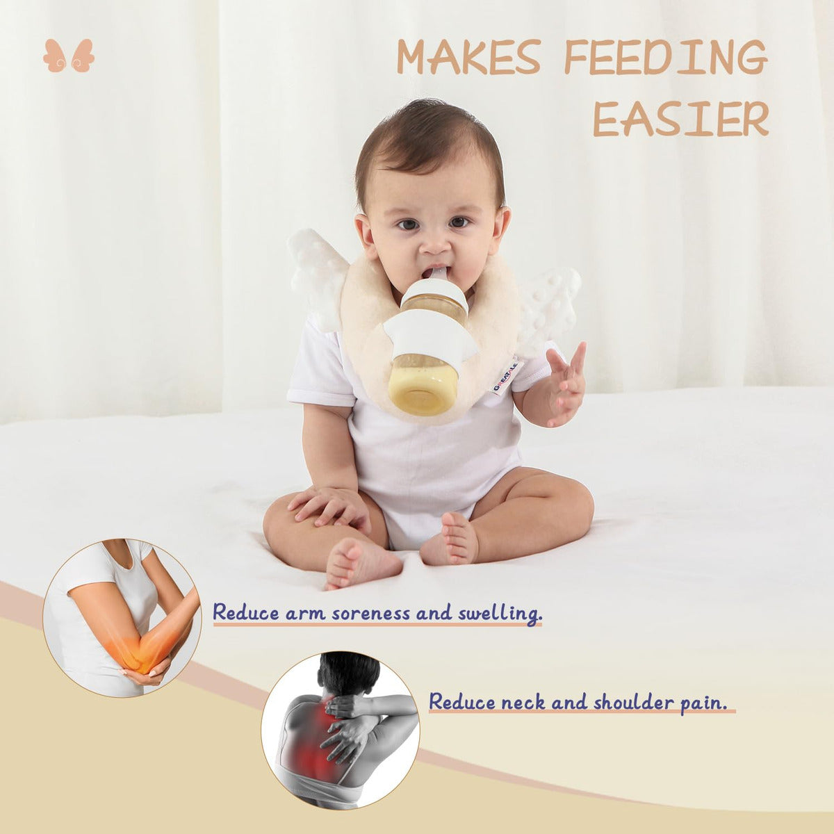 Aumenta la diversión: este cojín de alimentación para biberones cuenta con un bonito diseño de ala de ángel, y hemos añadido especialmente papel arrugado para que haga un sonido de susurro. No solo mejora la diversión de la alimentación, sino que también estabiliza las emociones del bebé.